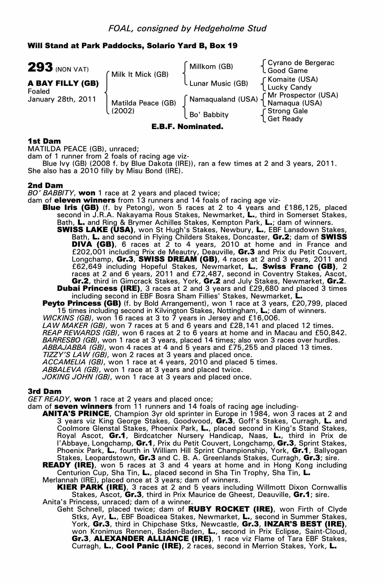 October Yearling Sale, Book 4 2016 lot 1834 F. by Westlake (GB) 2015, Hedgeholme Stud=>G Hodson 2,500 gns