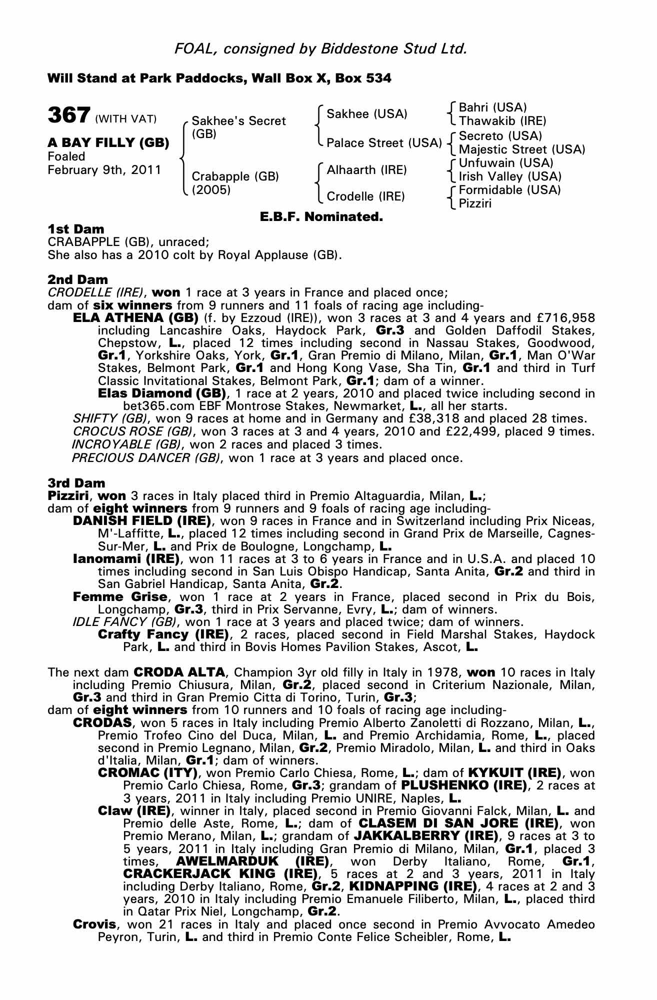 October Yearling Sale, Book 3 2013 lot 1691 F. by Royal Applause (GB) 2012, Biddestone Stud Ltd.=>V Smith 2,000 gns