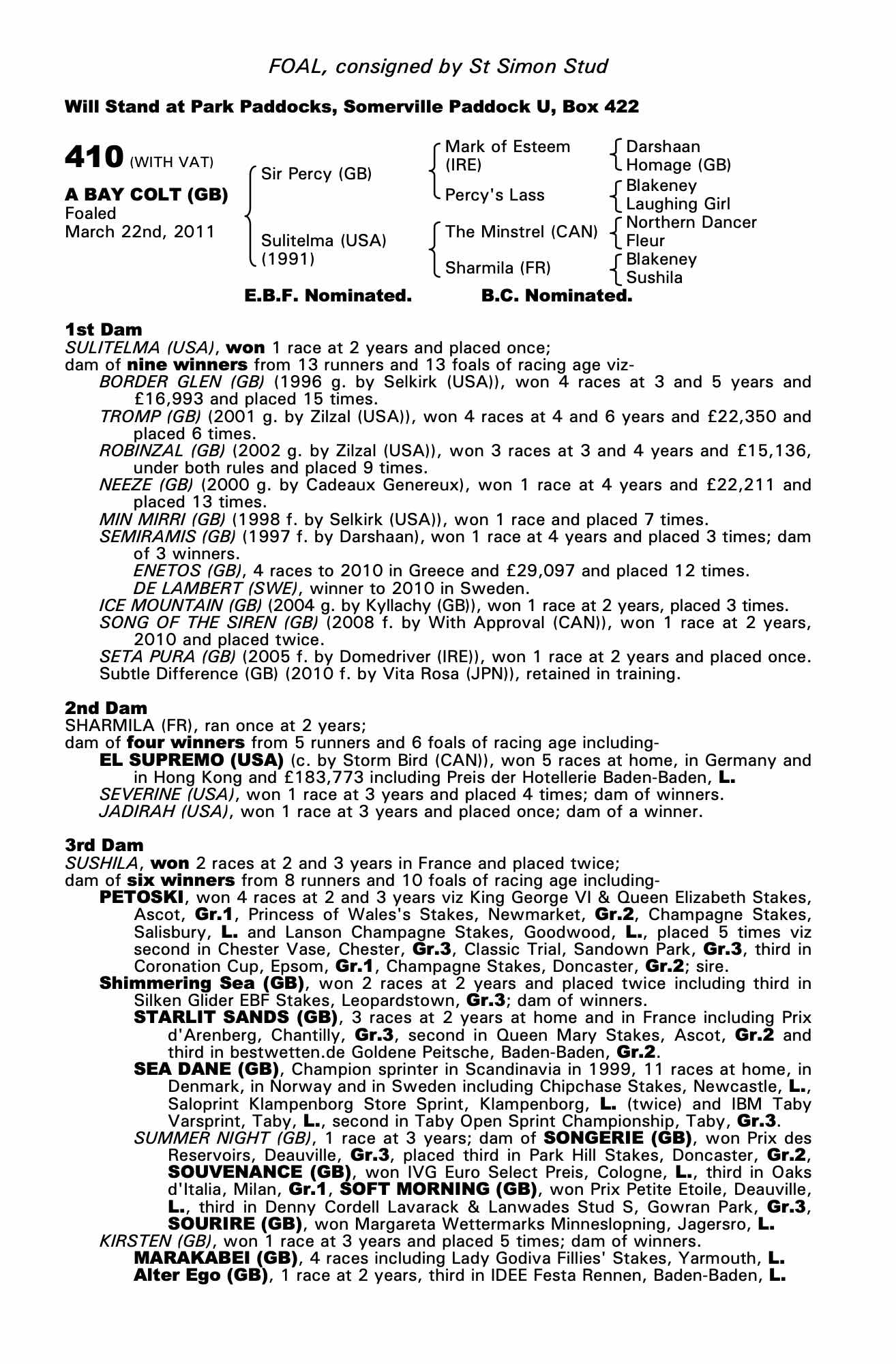 Autumn Horses in Training Sale 2011 lot 1001 Song of The Siren (GB) (F. by With Approval (CAN)), Park House Stables (A. Balding)=>Guy Stephenson 4,000 gns