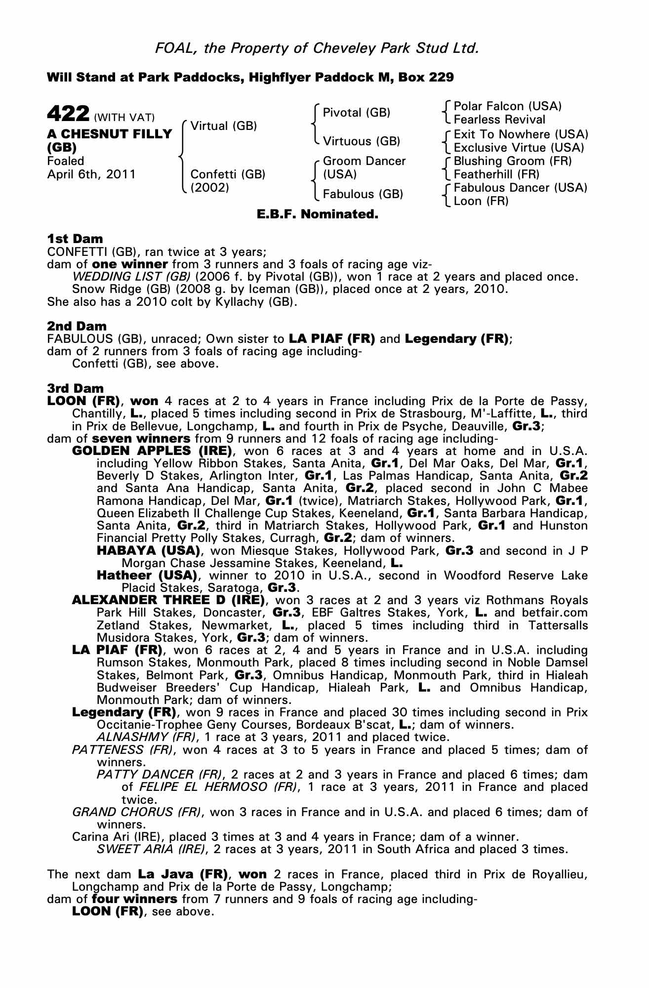 December Mare Sale 2010 lot 2152 Wedding List (GB) (M. by Pivotal (GB)), Cheveley Park Stud Ltd.=>Hassan Ali Abdulmalik 6,500 gns
