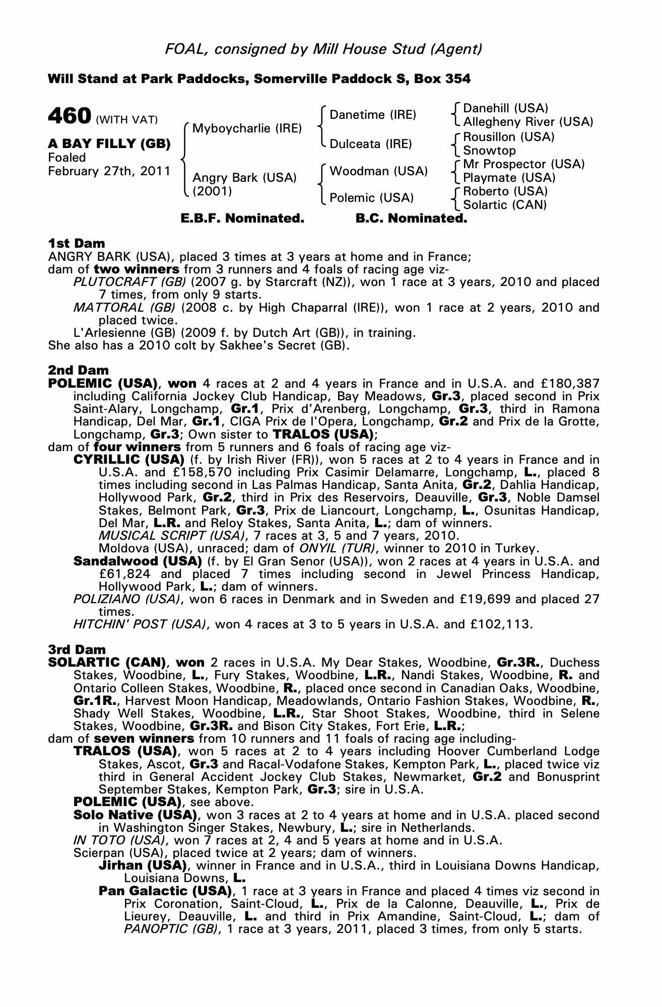 December Foal Sale 2009 lot 515 F. by Dutch Art (GB) 2009, Mill House Stud, Agent=>Caterina Dargan 13,000 gns