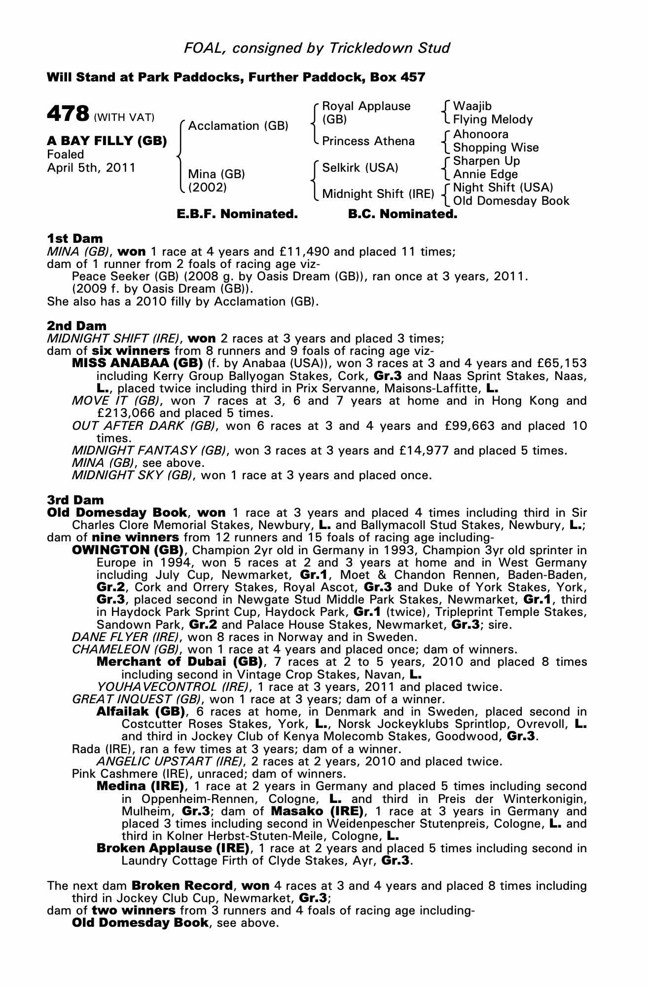October Yearling Sale, Book 2 2011 lot 866 F. 2010, Manister House Stud, Ireland=>Will Edmeades Bloodstock 23,000 gns
