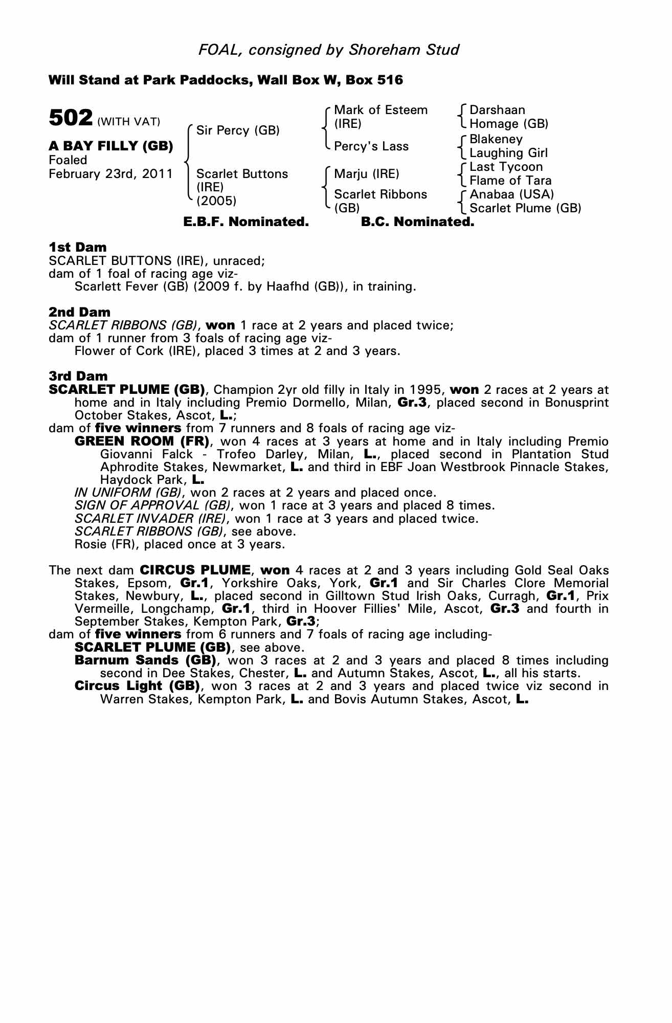 Consignor: Shoreham Stud