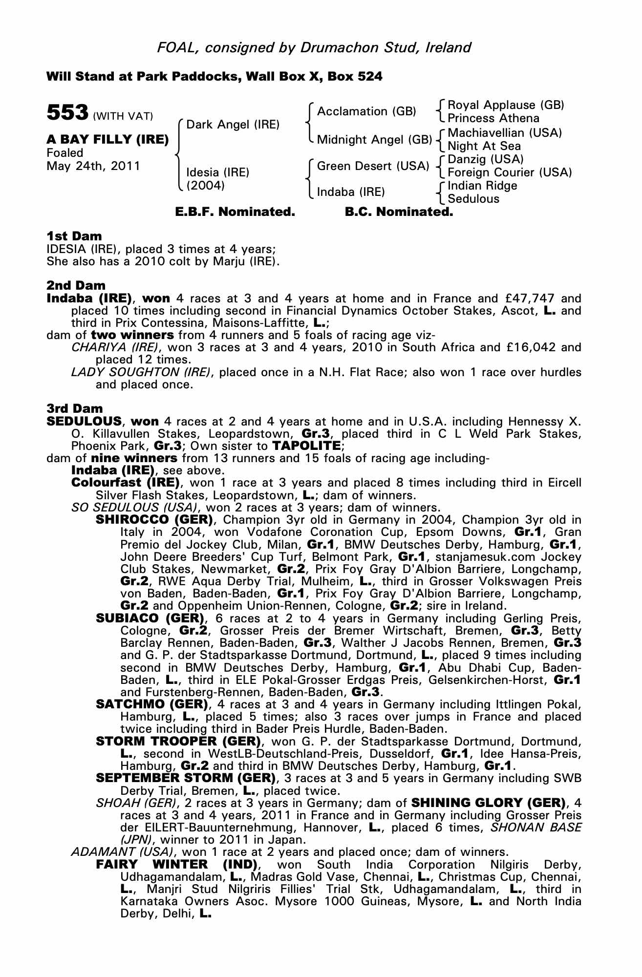 Consignor: Drumachon Stud, Ireland
