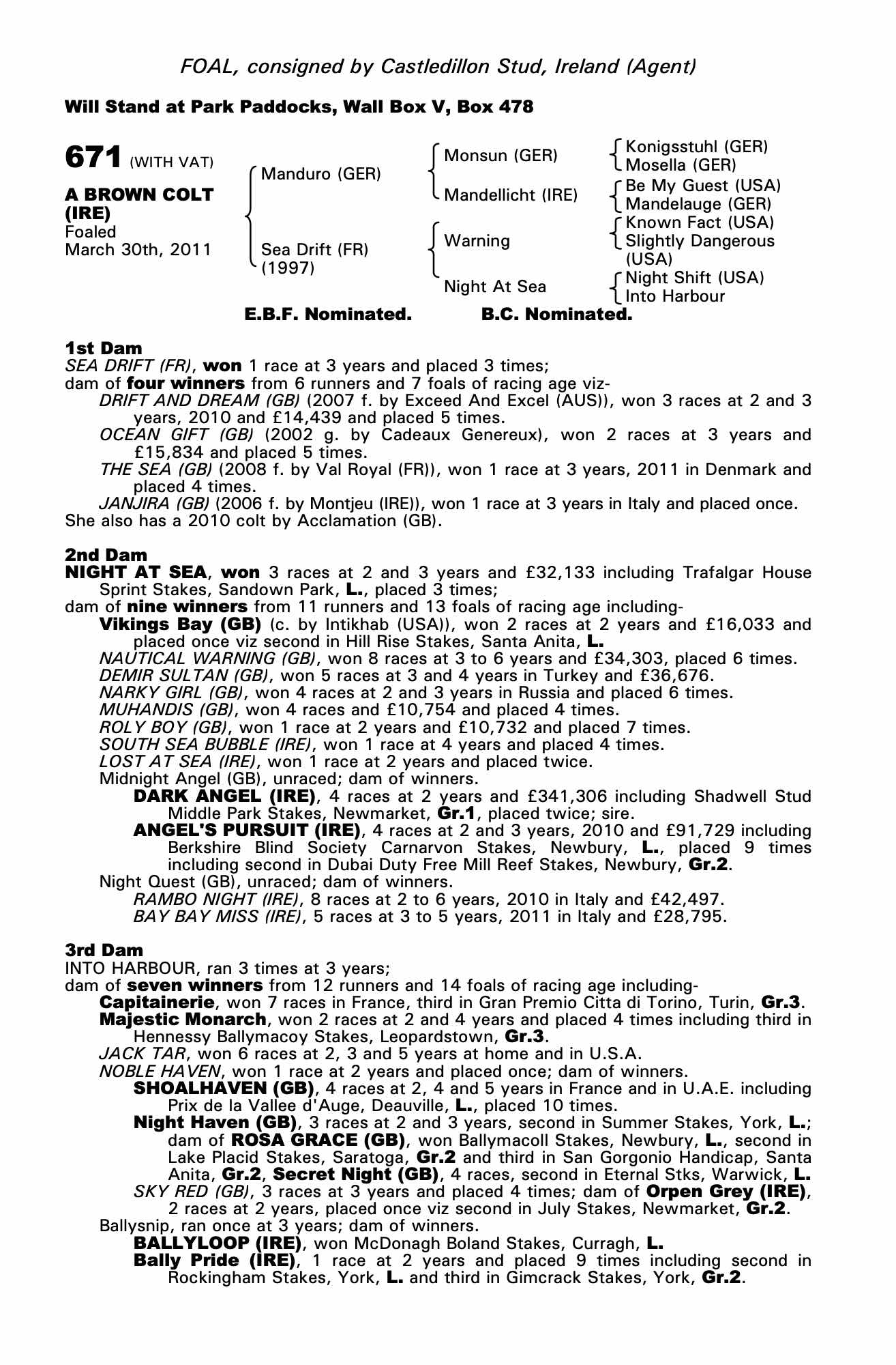 September Yearling Sale 2014 lot 481 F. by Bushranger (IRE) 2013, Castledillon Stud (Agent)=>Michael Conaghan €1,000