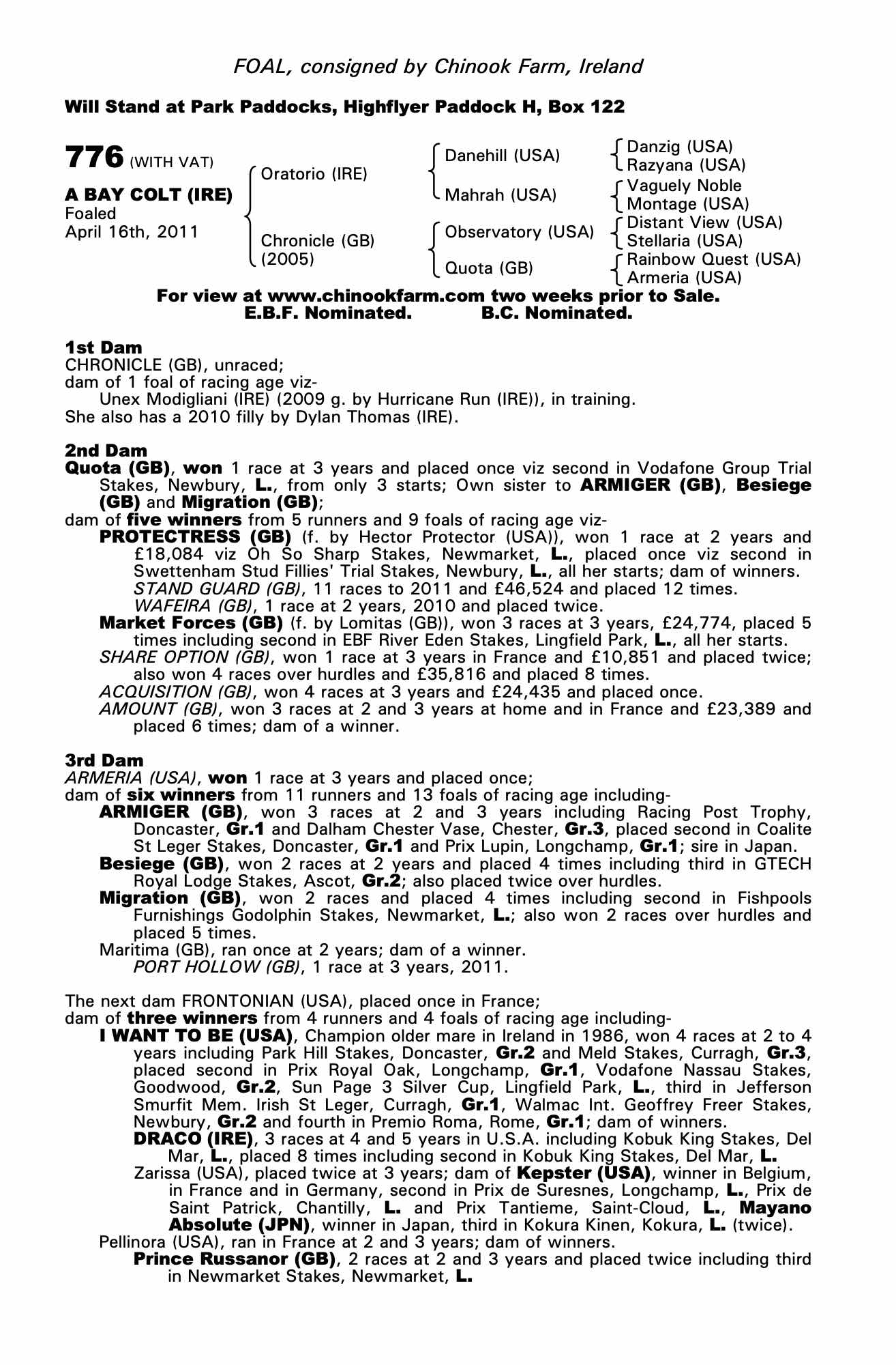 December Foal Sale 2010 lot 822 F. by Dylan Thomas (IRE) 2010, Chinook Farm, Ireland=>A Brambilla 30,000 gns