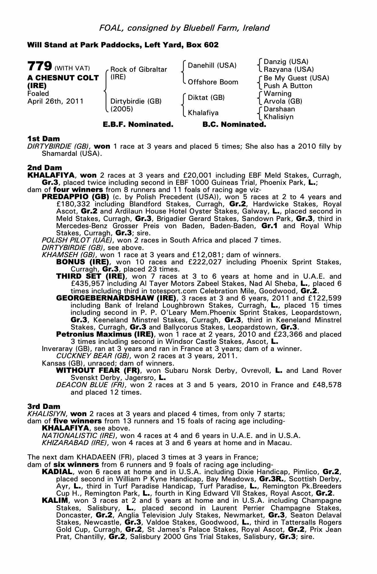 December Foal Sale 2010 lot 771 F. by Shamardal (USA) 2010, Bluebell Farm, Ireland=>Red House Stud 30,000 gns