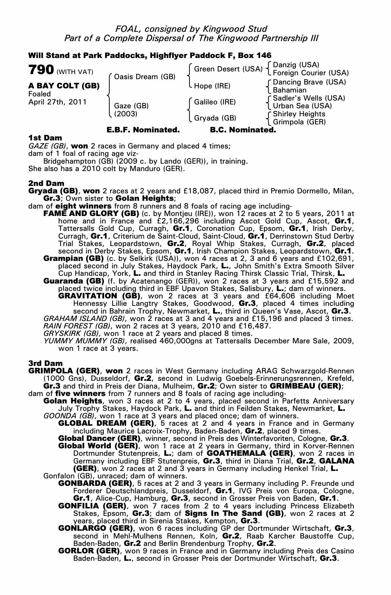December Foal Sale 2017 lot 922 F. by Golden Horn (GB) 2017, Norris Bloodstock=>Vendor 50,000 gns
