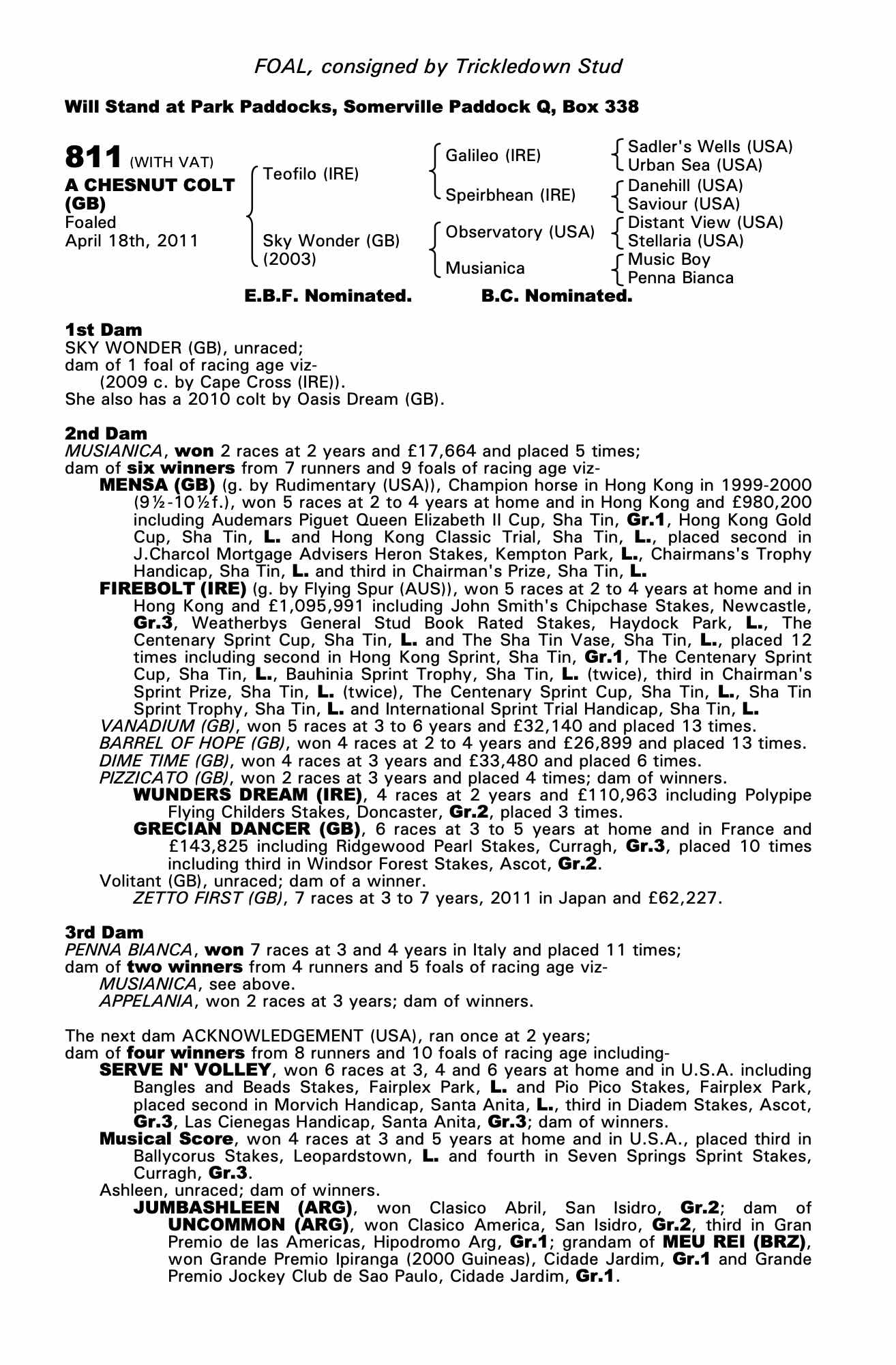 October Yearling Sale, Book 2 2011 lot 1094 C. by Oasis Dream (GB) 2010, Battlefield Stud=>Vendor 55,000 gns