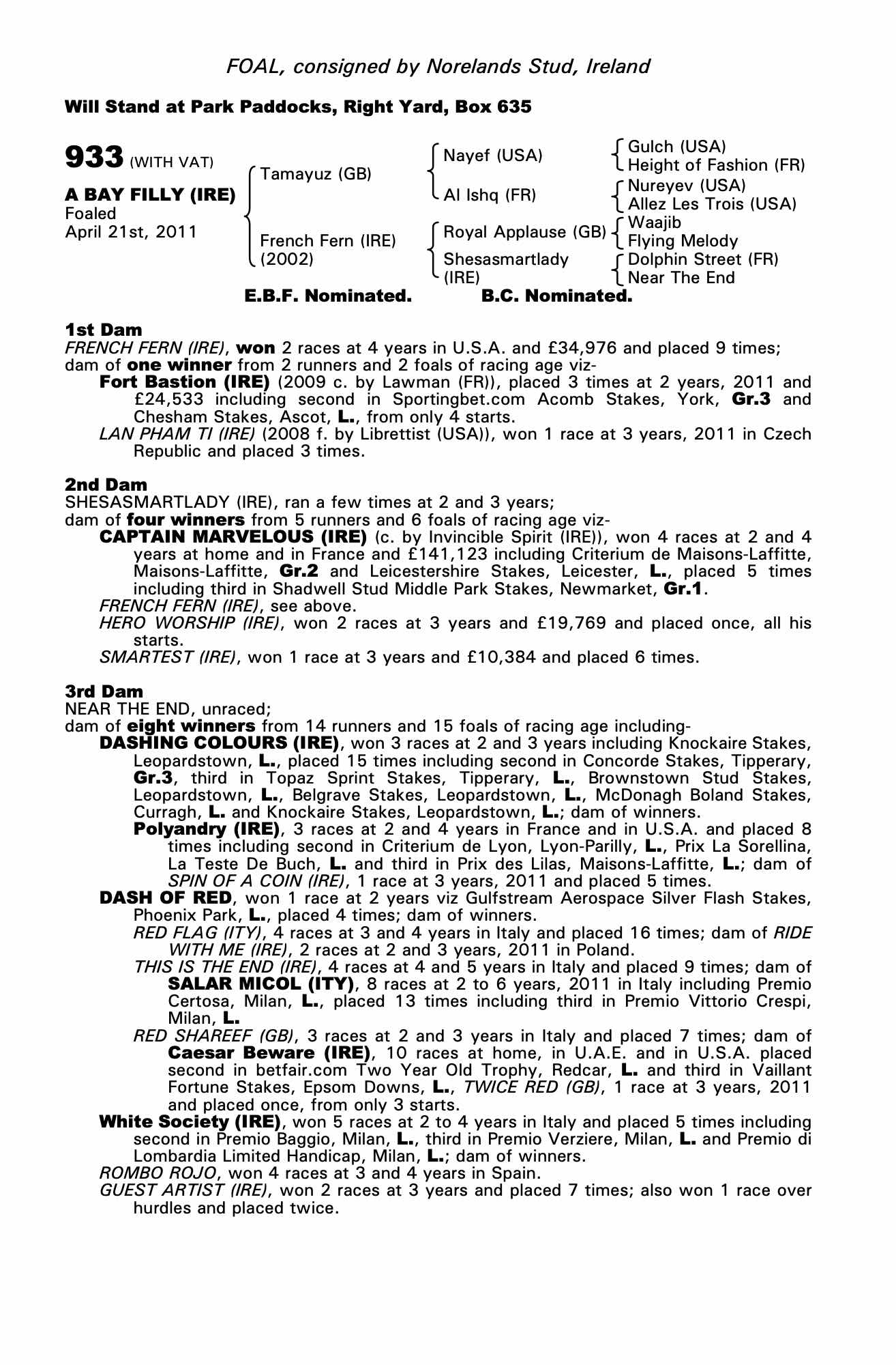 December Foal Sale 2012 lot 968 F. by Approve (IRE) 2012, Norelands Stud, Ireland=>Peter & Ross Doyle Bloodstock 32,000 gns