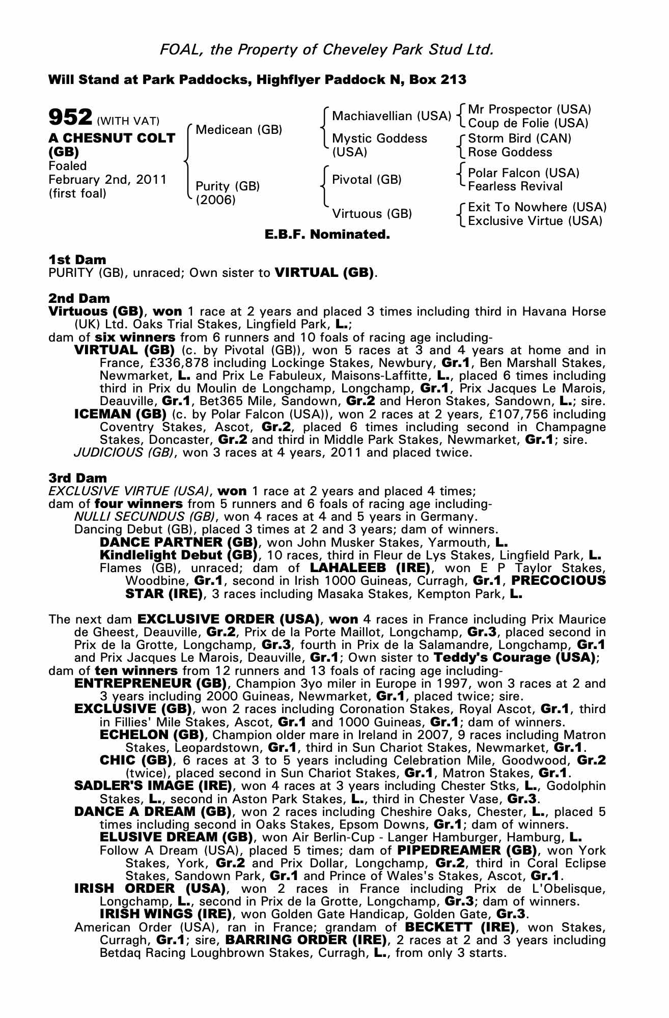 Consignor: Cheveley Park Stud Ltd.