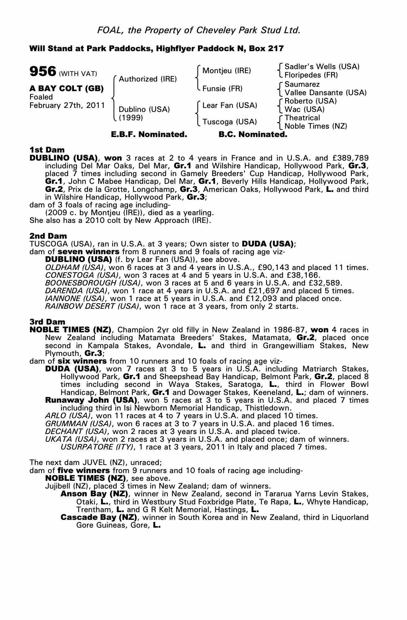 Consignor: Cheveley Park Stud Ltd.