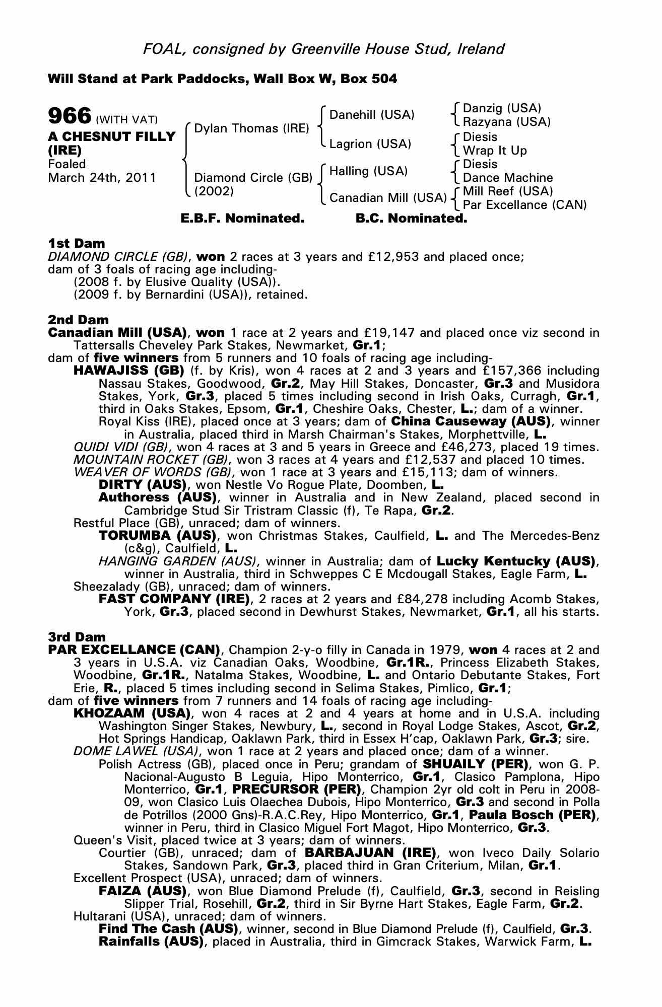 July Sale 2013 lot 43 Floatlikabutterfly (IRE) (F. by Bernardini (USA)), Greenville House Stud, Ireland=>Lot Not Sold 9,500 gns