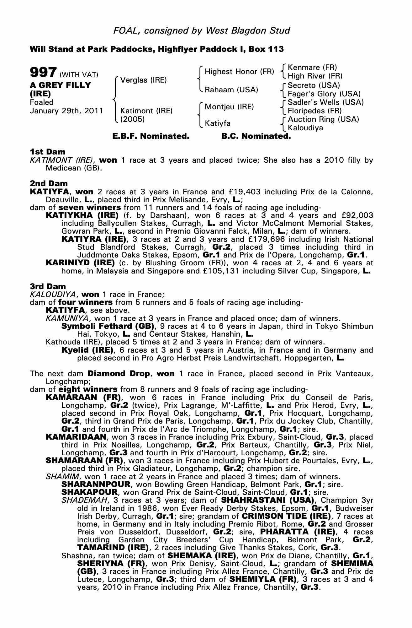 December Foal Sale 2010 lot 1014 F. by Medicean (GB) 2010, West Blagdon Stud=>Vendor 20,000 gns