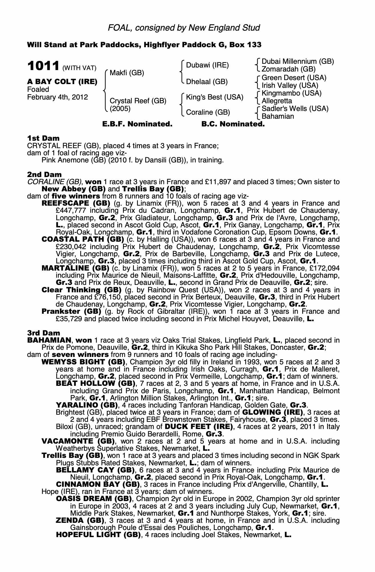 October Yearling Sale, Book 1 2011 lot 27 F. by Dansili (GB) 2010, Watership Down Stud=>Vendor 45,000 gns