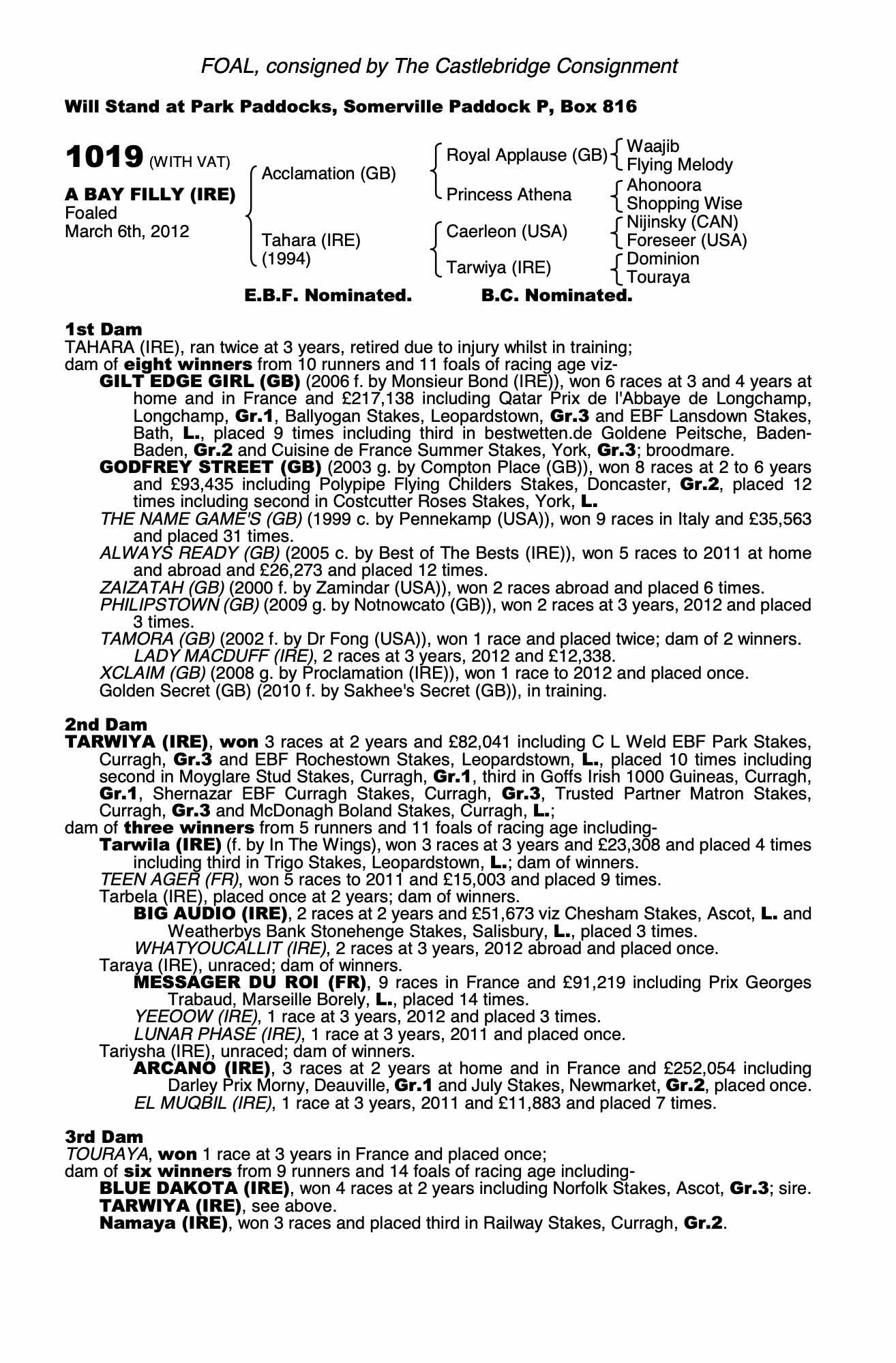 July Sale 2017 lot 242 Novel Concept (IRE) (F. by Fastnet Rock (AUS)), Thomastown Castle Stables, Ireland (J. A. Stack)=>Vendor 50,000 gns