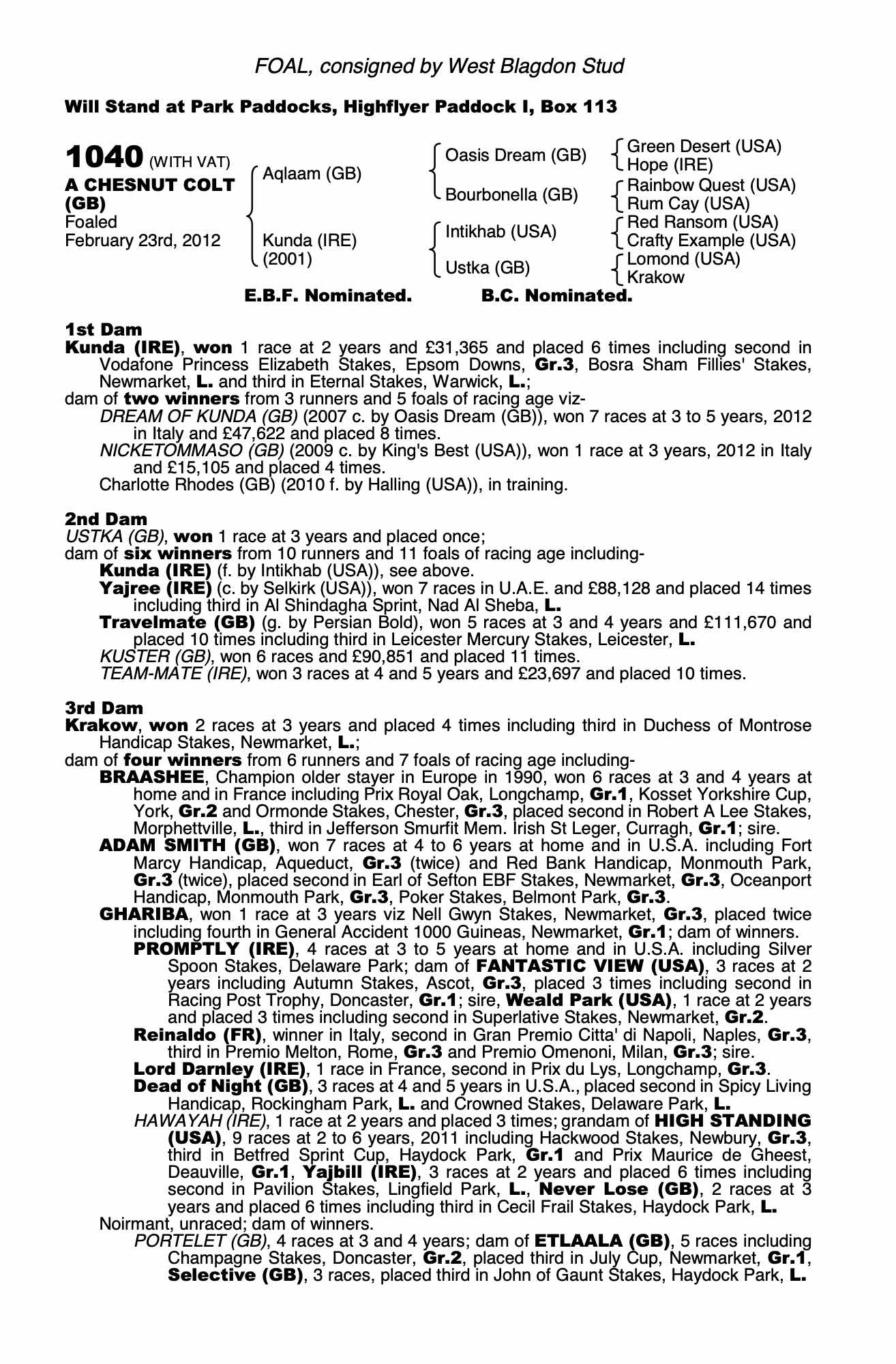 February Sale 2014 lot 259 Charlotte Rhodes (GB) (F. by Halling (USA)), Prestige Place (M. Botti)=>De Burgh Equine 4,800 gns