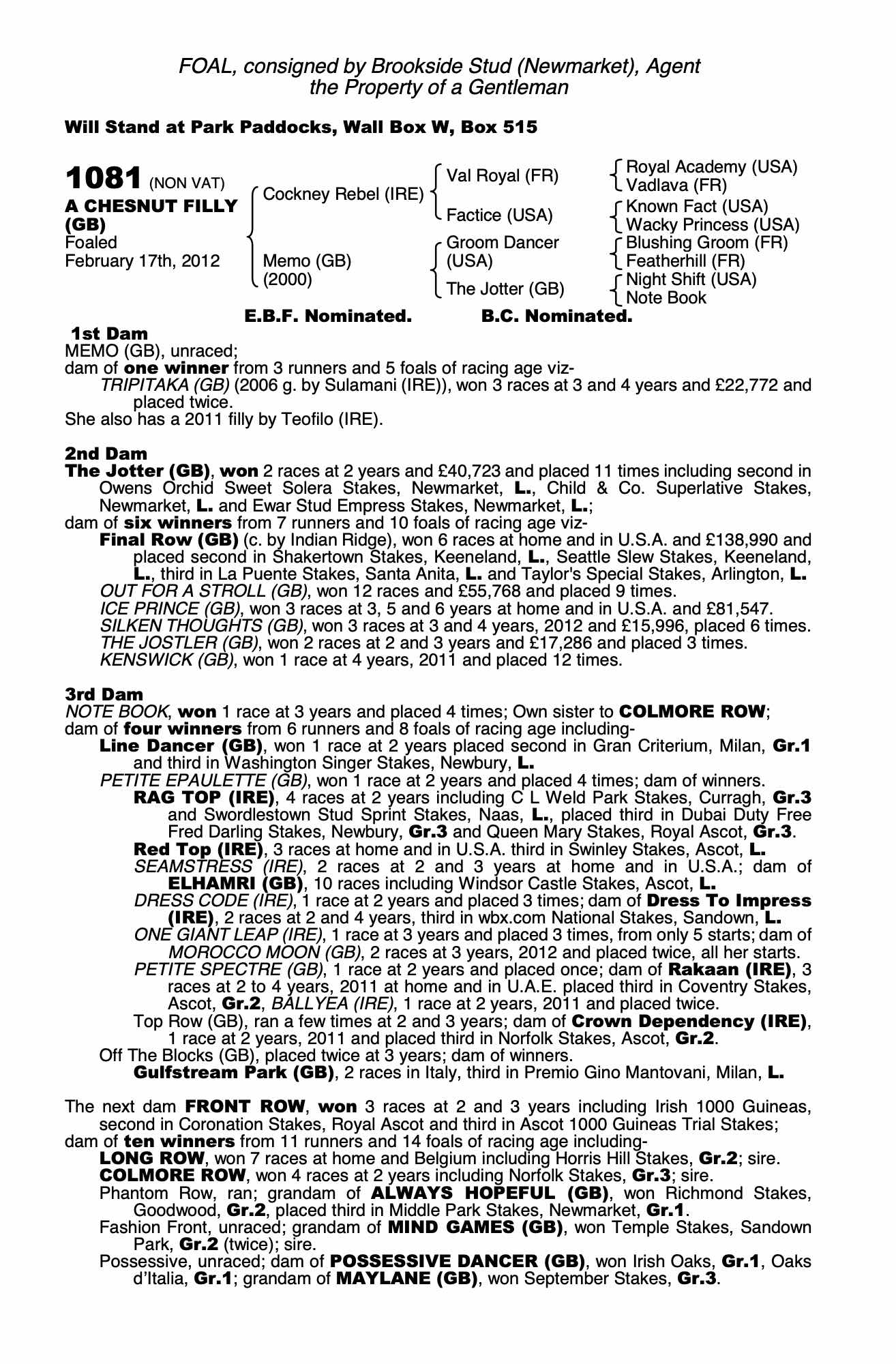 July Sale 2014 lot 572 New Row (GB) (F. by Teofilo (IRE)), Phantom House Stables (W. Jarvis)=>Paul Nataf 3,000 gns