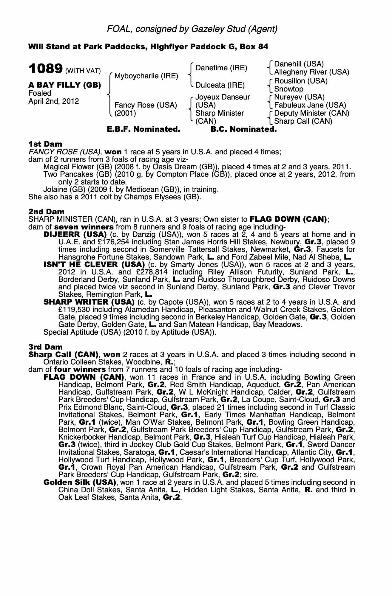 Consignor: Gazeley Stud (Agent)