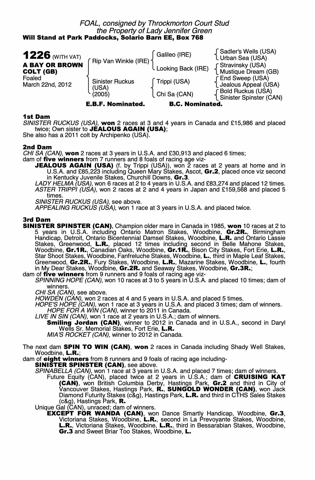 Consignor: Throckmorton Court Stud