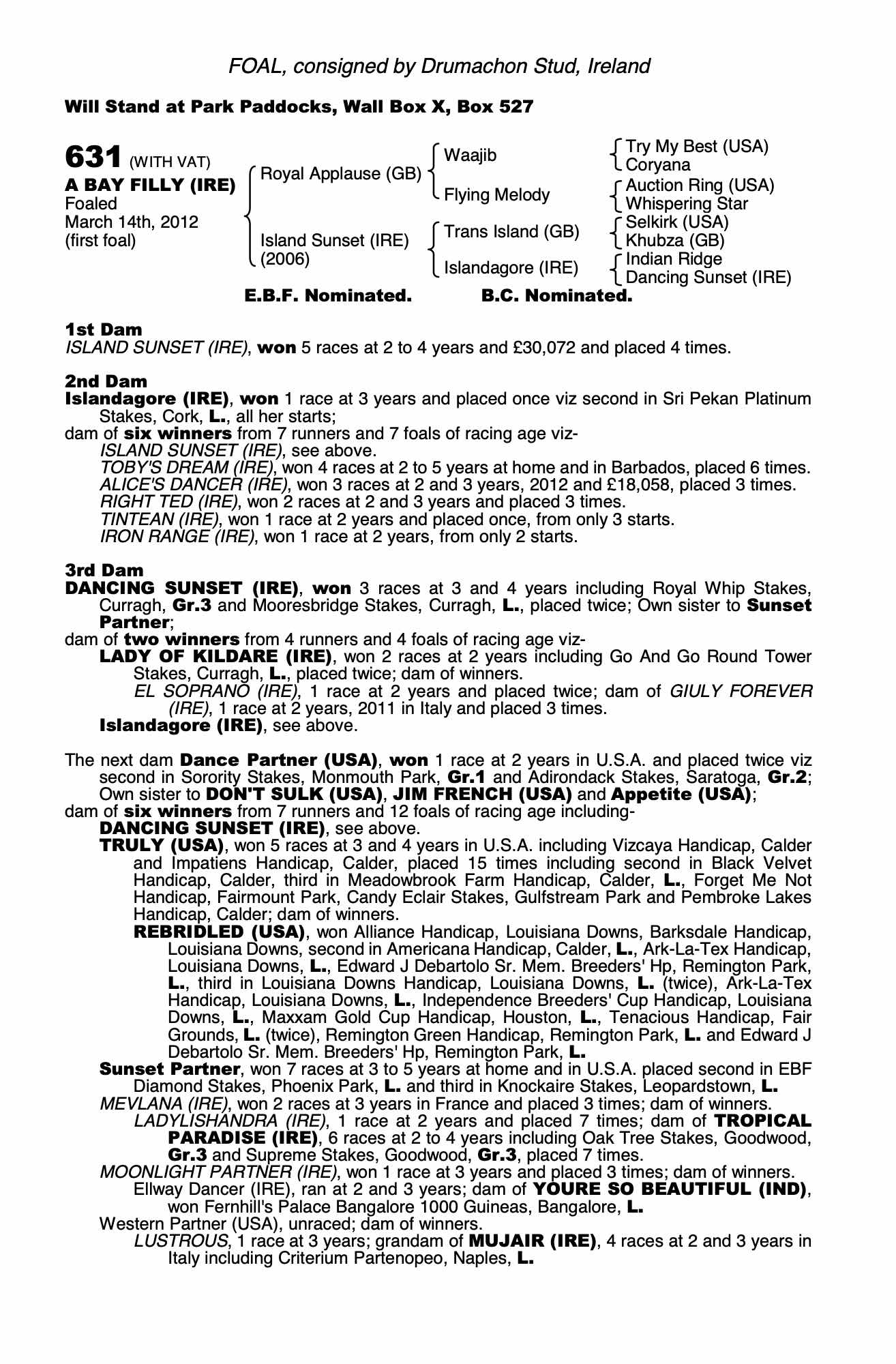 December Foal Sale 2013 lot 543 F. by Dark Angel (IRE) 2013, Drumachon Stud, Ireland=>Vendor 10,000 gns