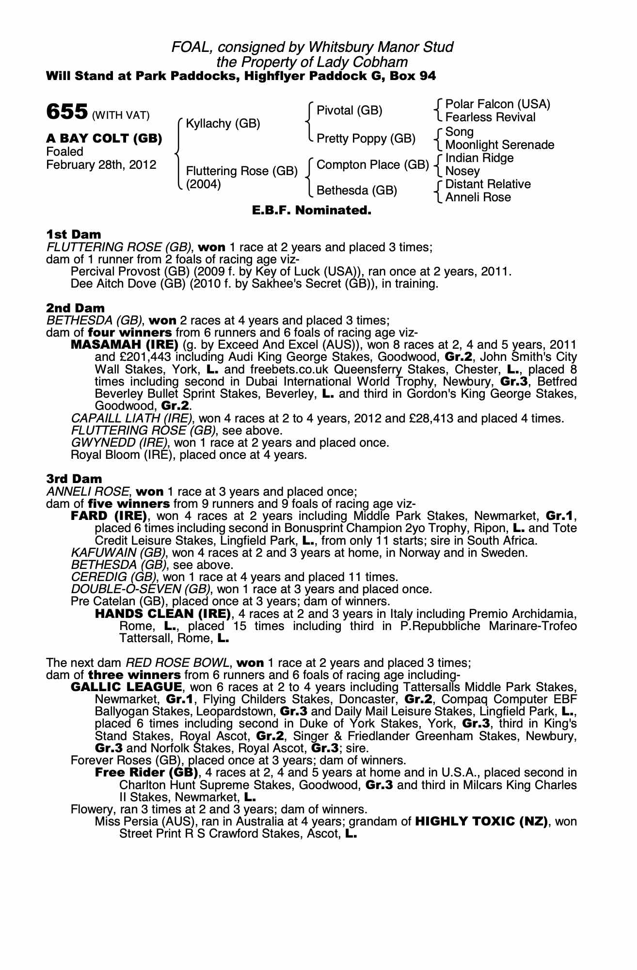 February Sale 2015 lot 242, Kimpton Down Stables (R. Beckett)=>Lady Cobham 3,000 gns