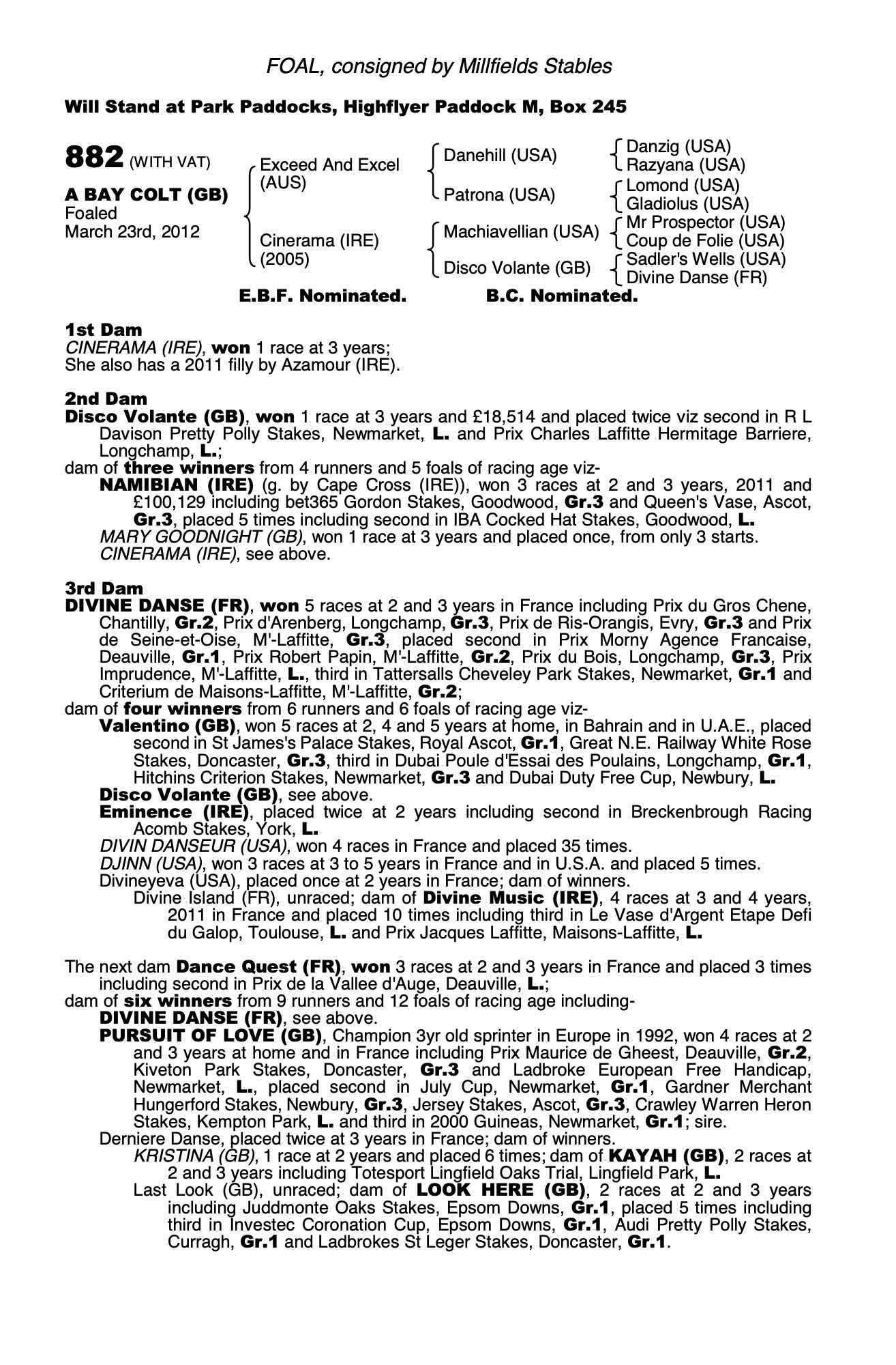 December Foal Sale 2011 lot 846 F. by Azamour (IRE) 2011, Millfields Stables=>Lot Not Sold 14,000 gns
