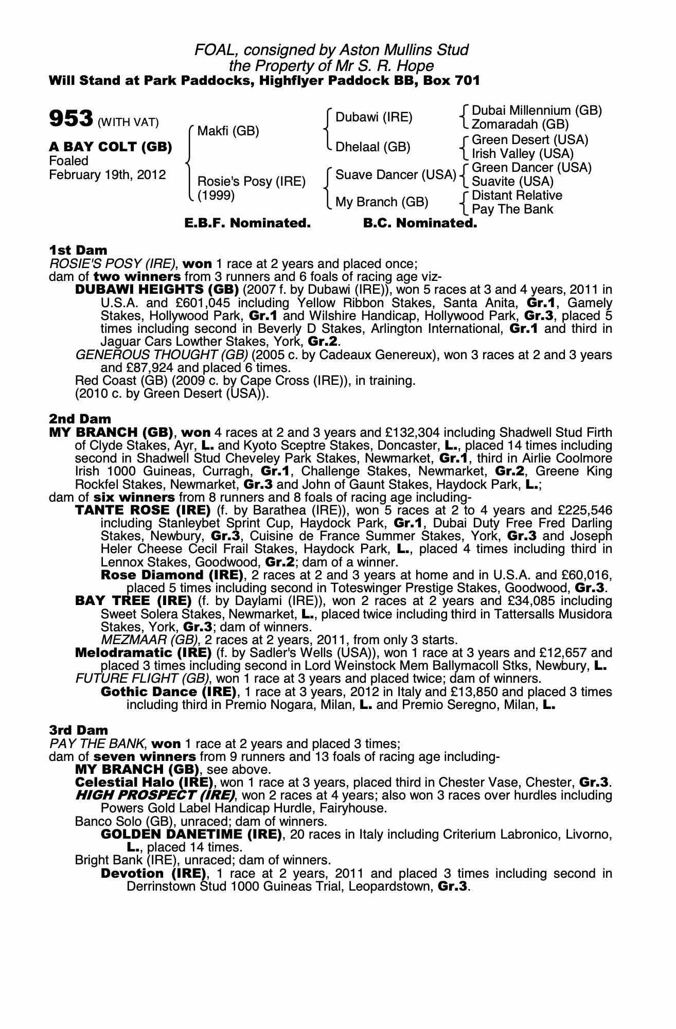 October Yearling Sale, Book 1 2008 lot 176 F. by Dubawi (IRE) 2007, Tally-Ho Stud, Ireland=>NA Callaghan 72,000 gns