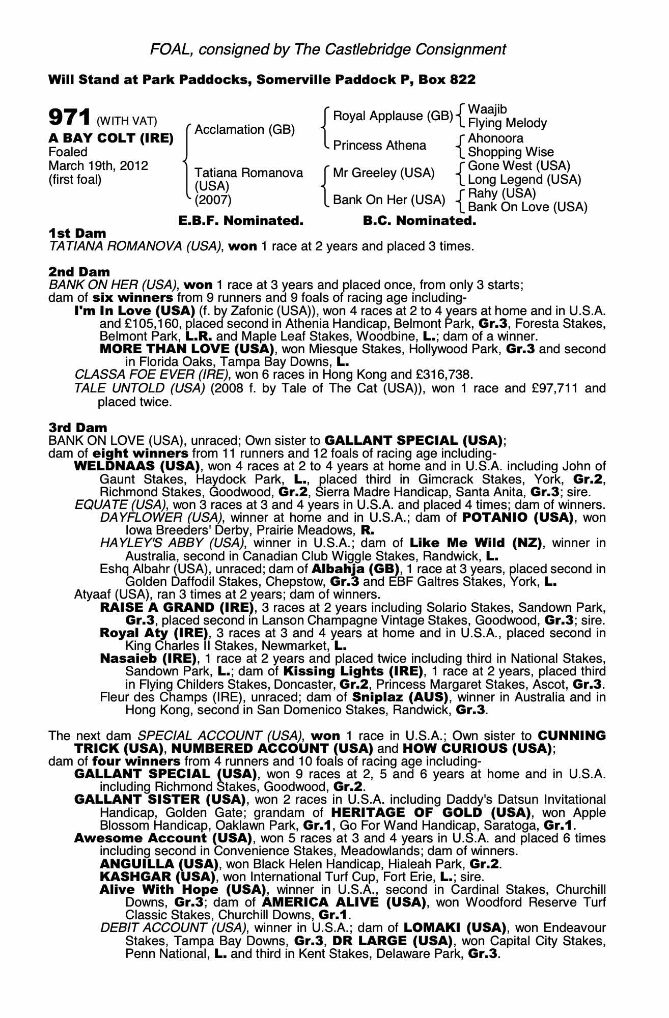 October Yearling Sale, Book 2 2013 lot 910, Furnace Mill Stud=>Shadwell Estate Company 90,000 gns