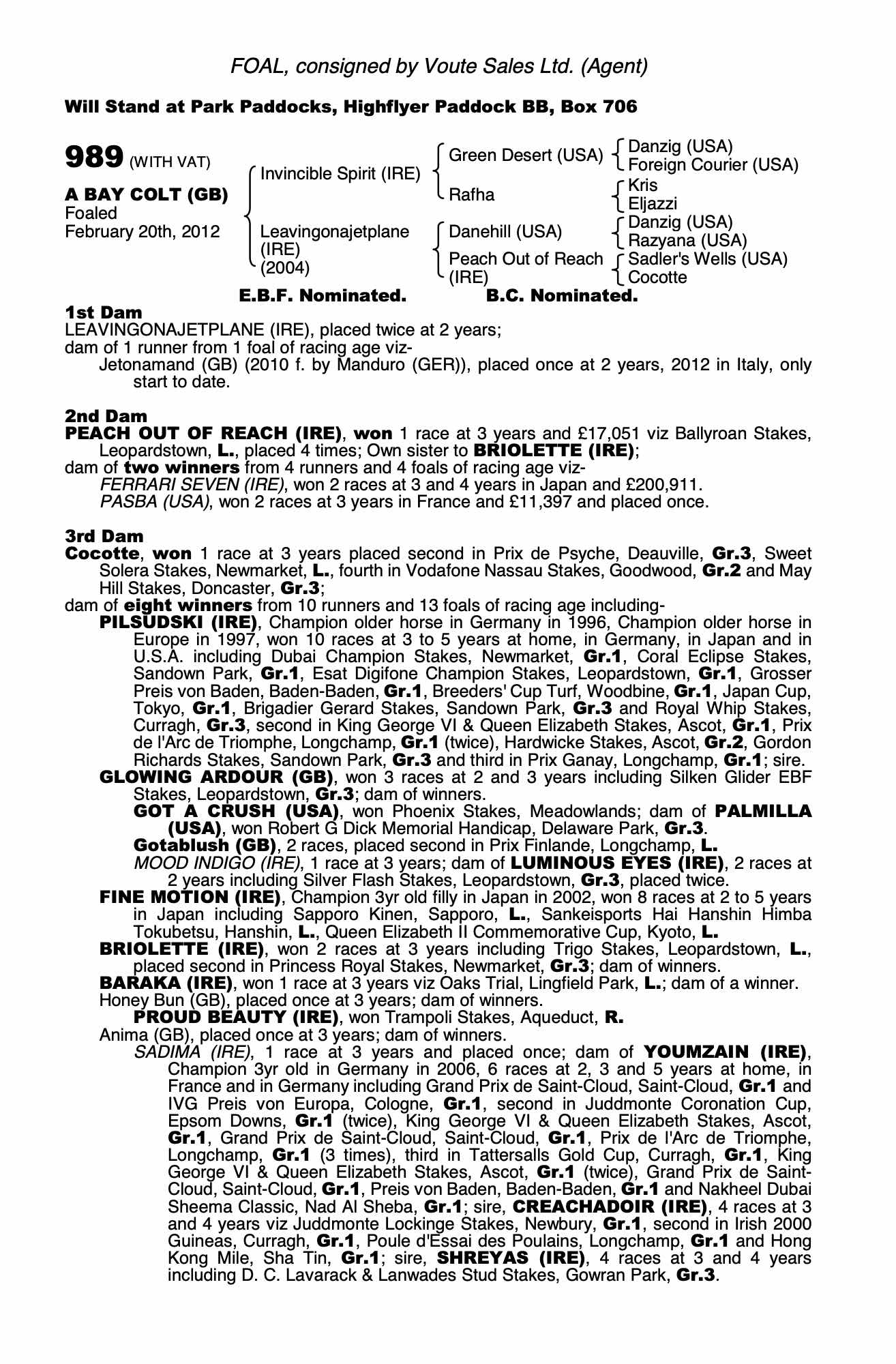 December Foal Sale 2013 lot 1038 F. by Pivotal (GB) 2013, Voute Sales Ltd. (Agent)=>Vendor 30,000 gns