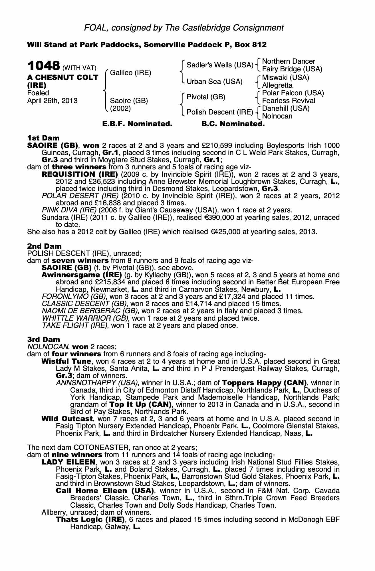 July Sale 2014 lot 462 Sundara (IRE) (C.), Glebe House Stables, Ireland (J. S. Bolger)=>Josef Vana 50,000 gns