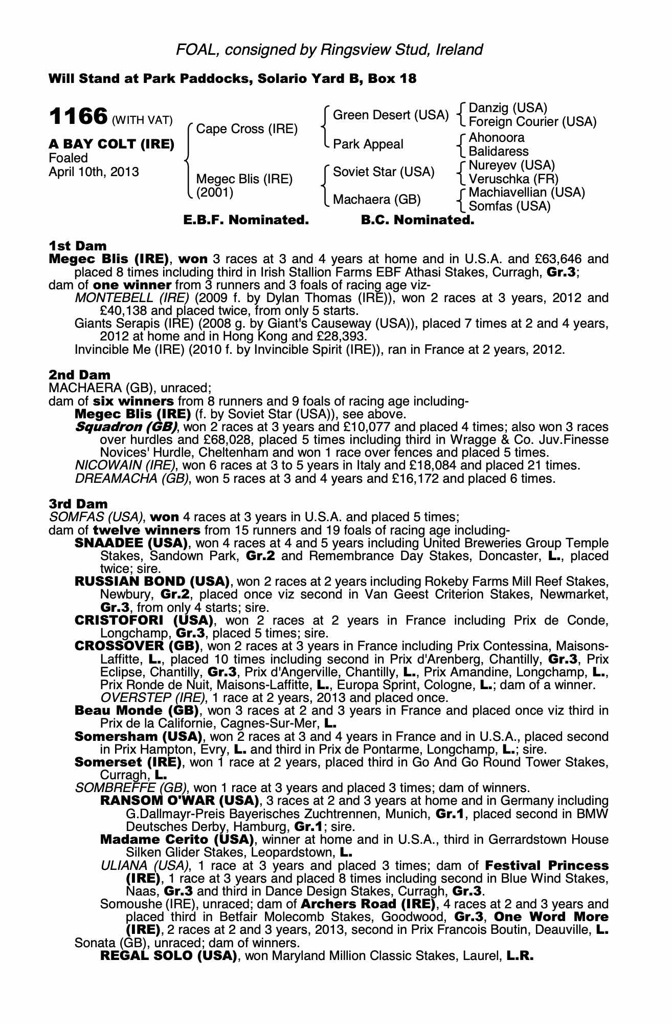Craven Breeze Up Sale 2012 lot 37 F. by Invincible Spirit (IRE) 2010, Bansha House Stables, Ireland=>Lot Not Sold 19,000 gns