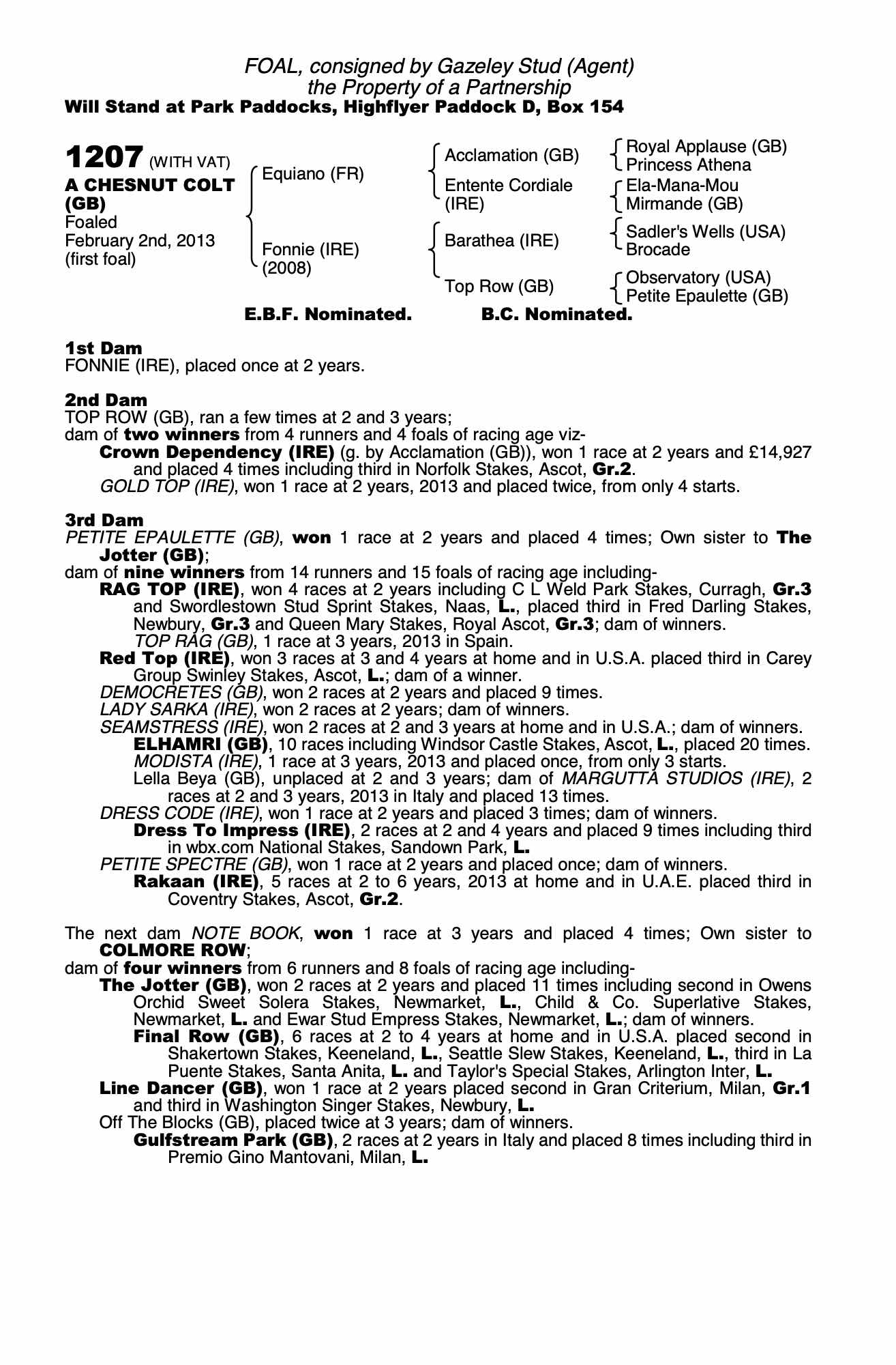 Consignor: Gazeley Stud (Agent)