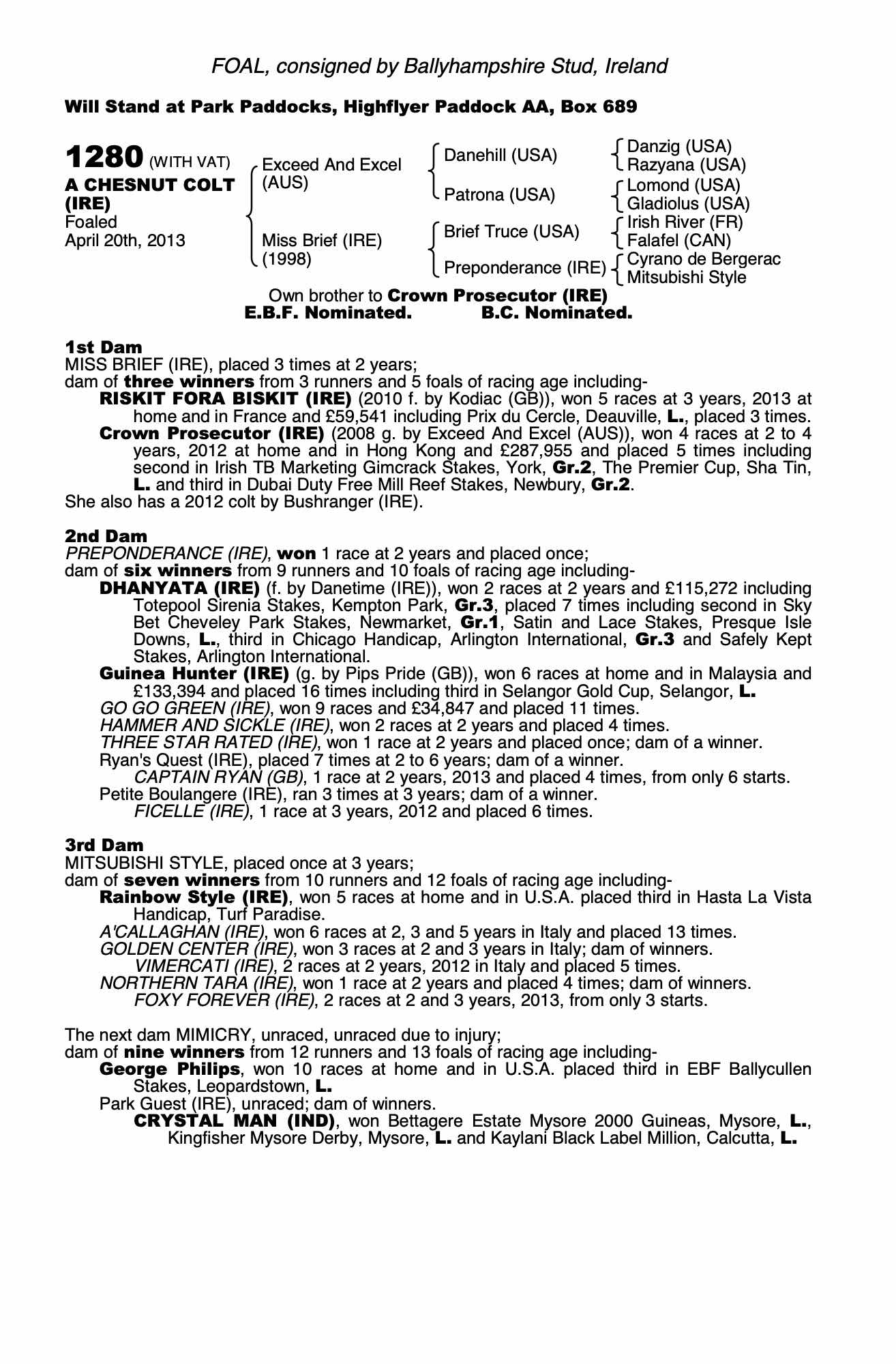 Consignor: Ballyhampshire Stud, Ireland