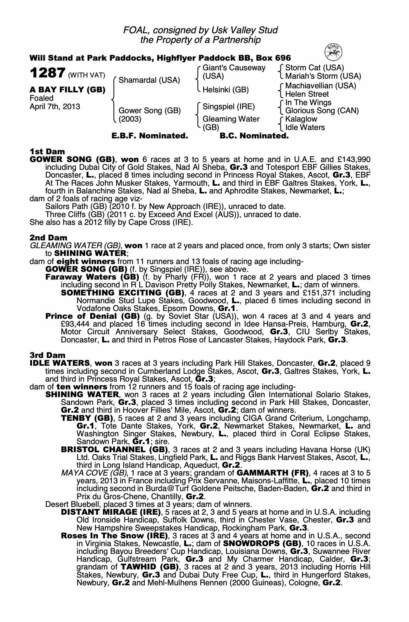October Yearling Sale, Book 1 2013 lot 426 F. by Cape Cross (IRE) 2012, Usk Valley Stud=>D Elsworth 45,000 gns