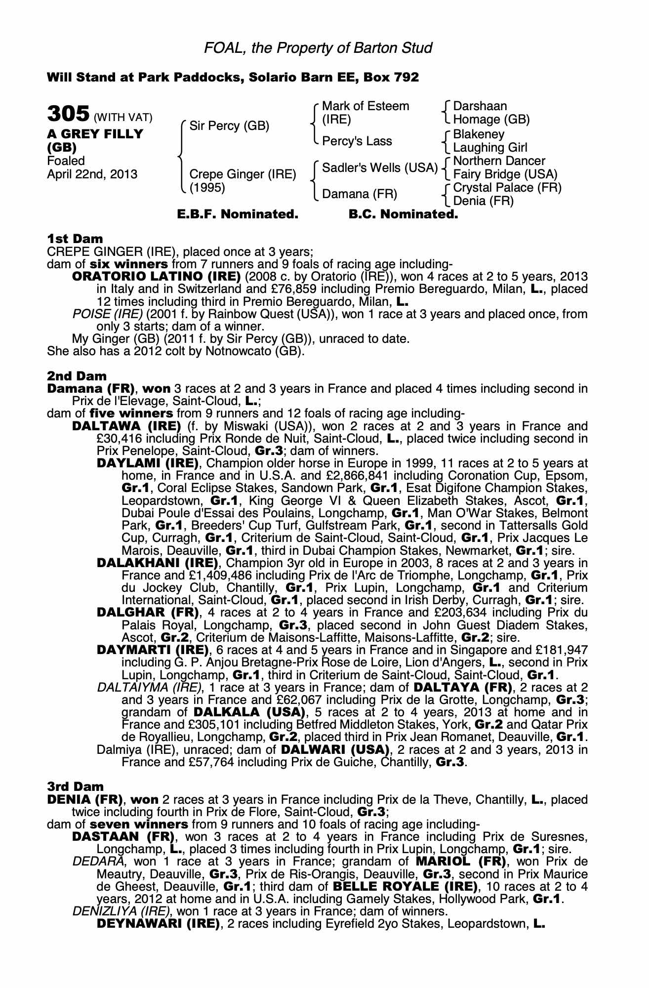 October Yearling Sale, Book 3 2012 lot 1829 F. 2011, Barton Stud=>Bobby O'Ryan 2,700 gns