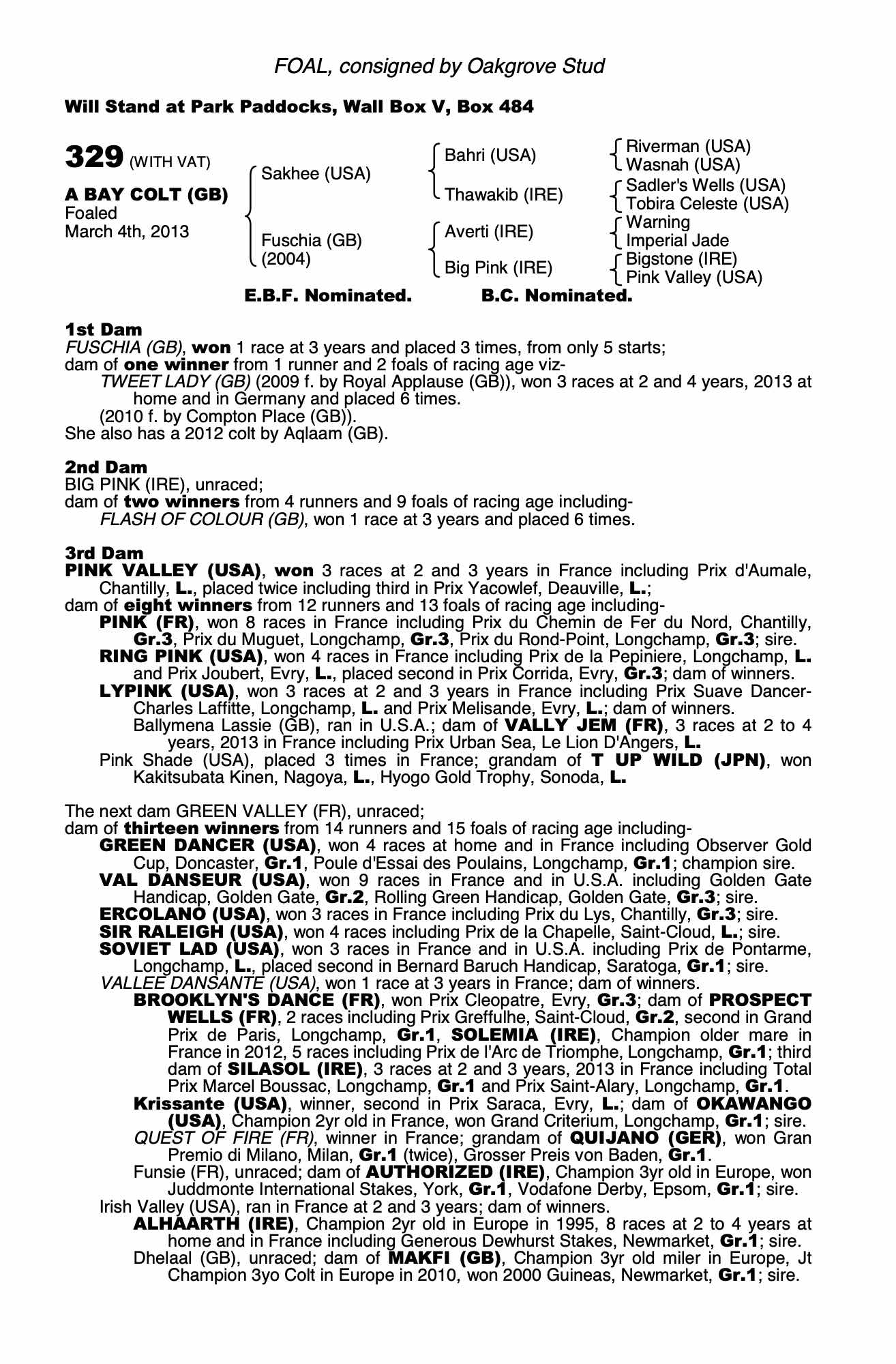 October Yearling Sale, Book 2 2013 lot 1307 C. by Aqlaam (GB) 2012, Oakgrove Stud=>Mario Massimi 11,000 gns