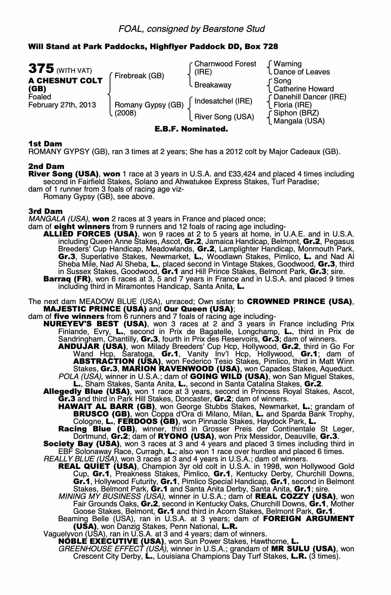 September Yearling Sale 2014 lot 472, Fearnview Stables=>New Racing Factory €2,000