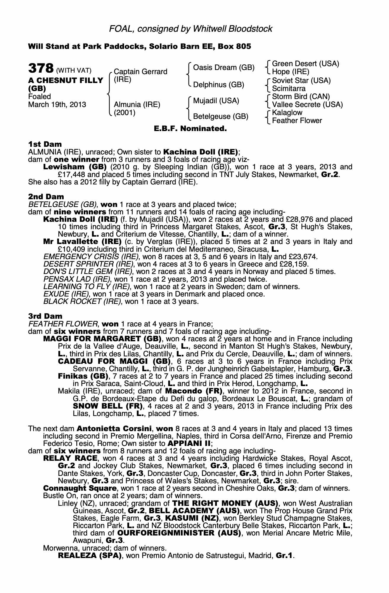 October Yearling Sale, Book 3 2014 lot 1724, Gazeley Stud (Agent)=>B Smart 10,000 gns