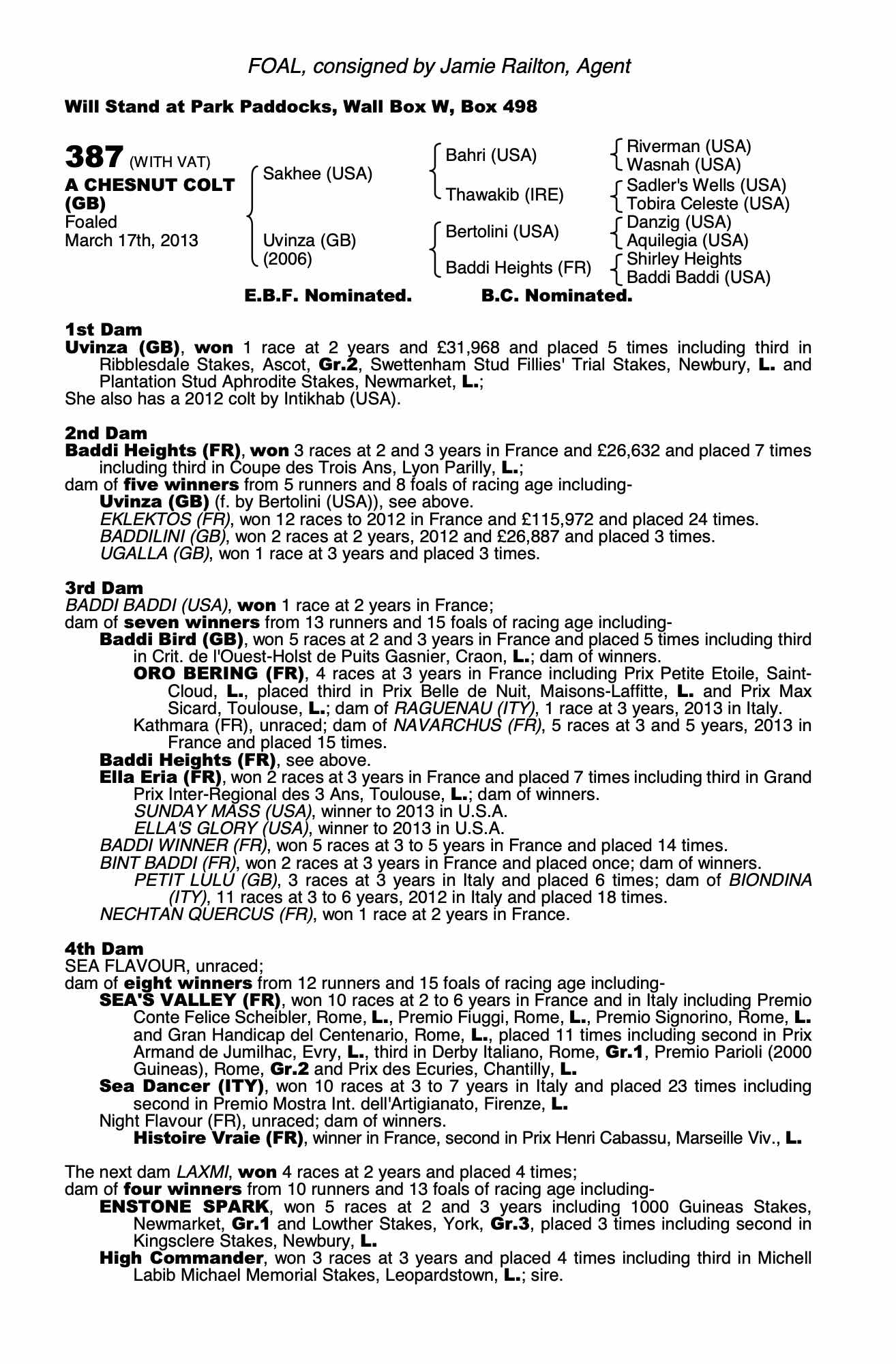 October Yearling Sale, Book 2 2013 lot 956 C. by Intikhab (USA) 2012, John Troy, Agent=>Peter & Ross Doyle Bloodstock 170,000 gns