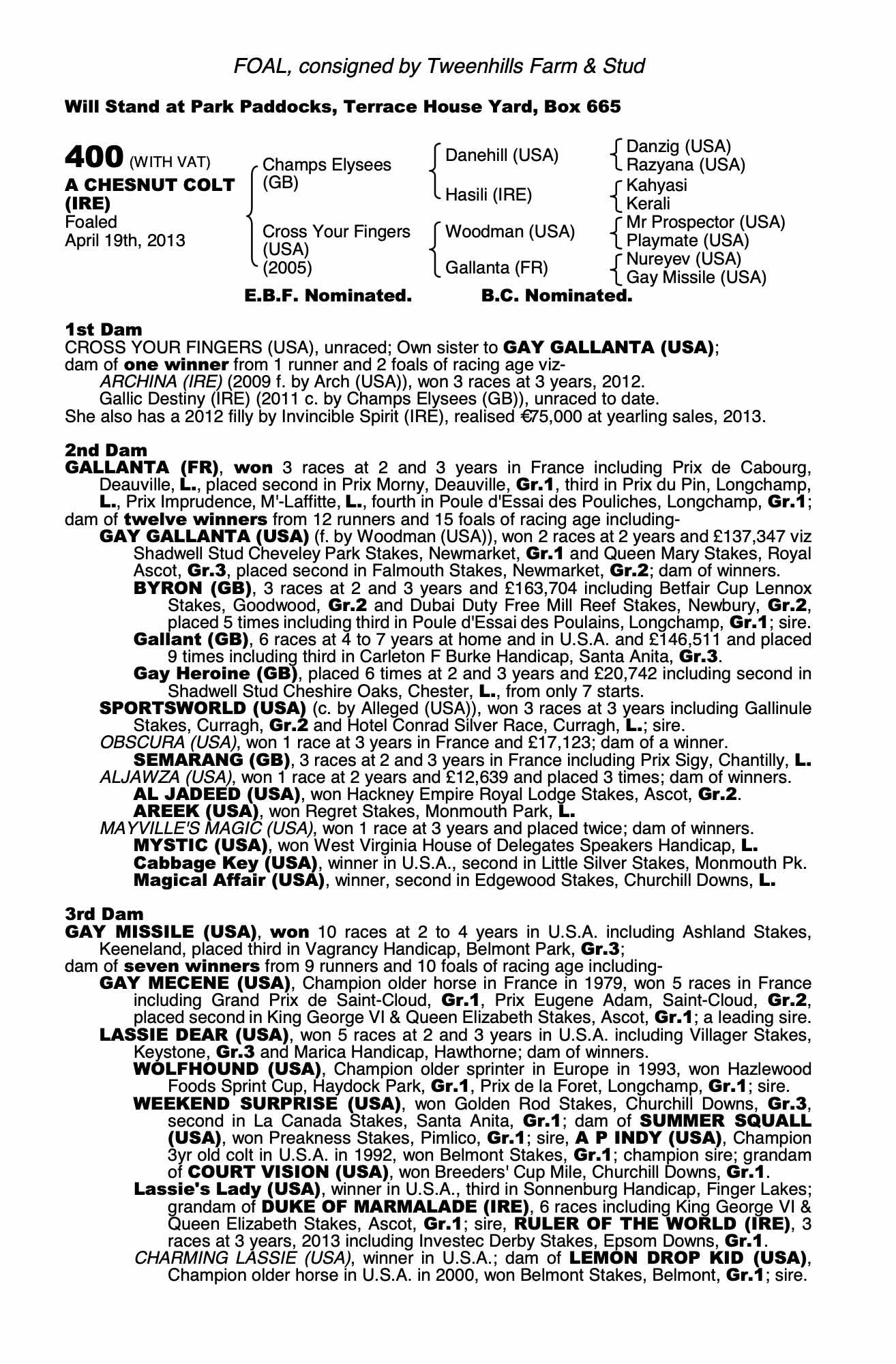 July Sale 2012 lot 568 Archina (IRE) (F. by Arch (USA)), Park House Stables (A. Balding)=>Allan Bloodlines 15,000 gns