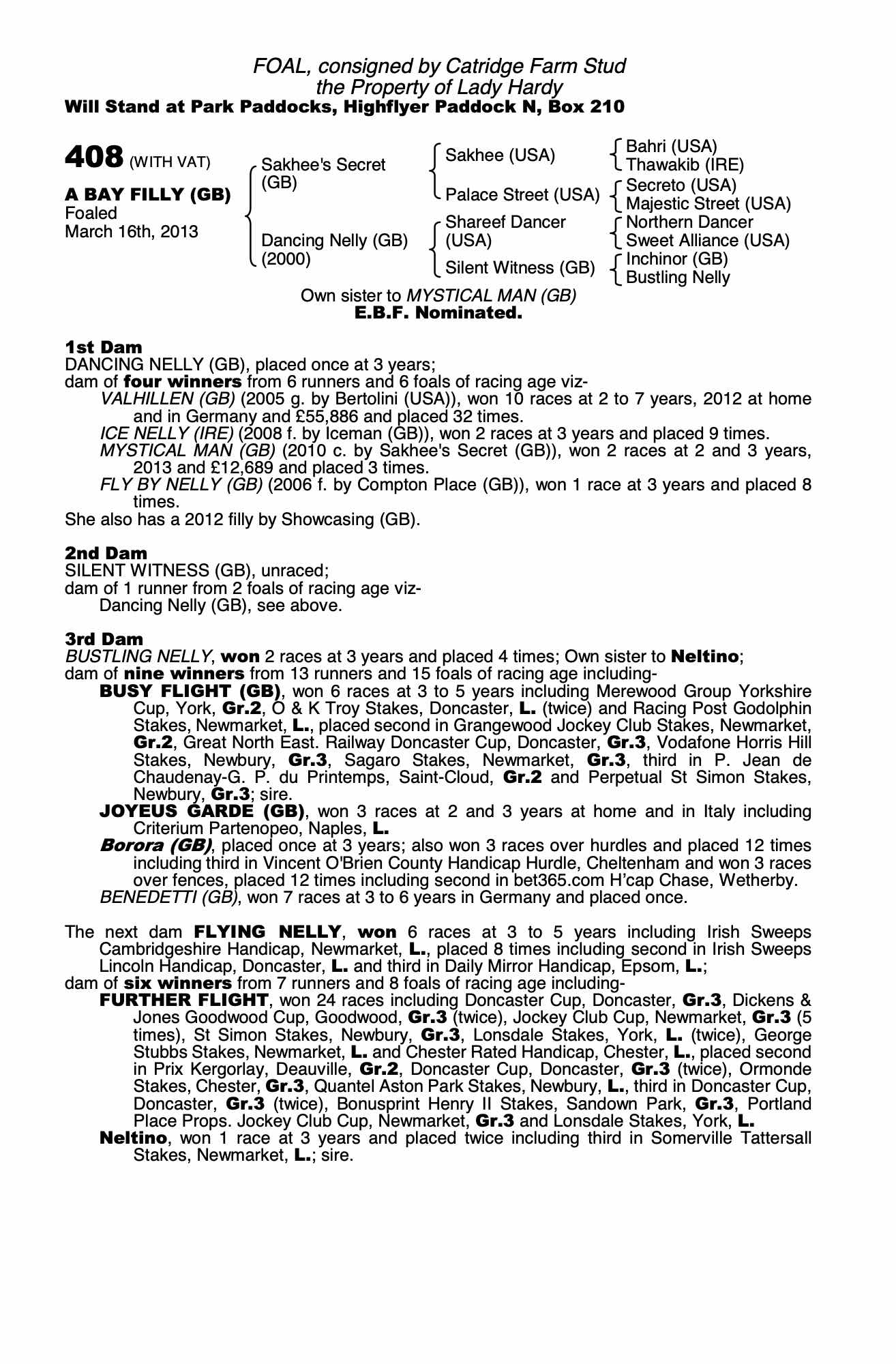 Consignor: Catridge Farm Stud