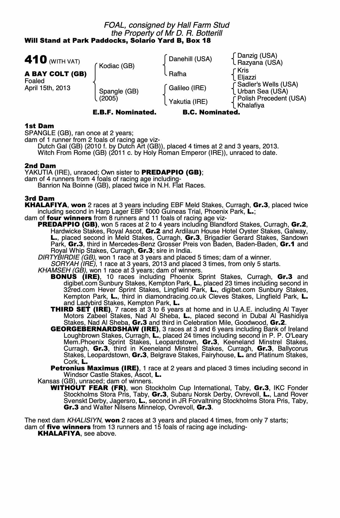 October Yearling Sale, Book 2 2016 lot 1072 C. 2015, Kilminfoyle House Stud, Ireland (Agent)=>Shadwell Estate Company 100,000 gns