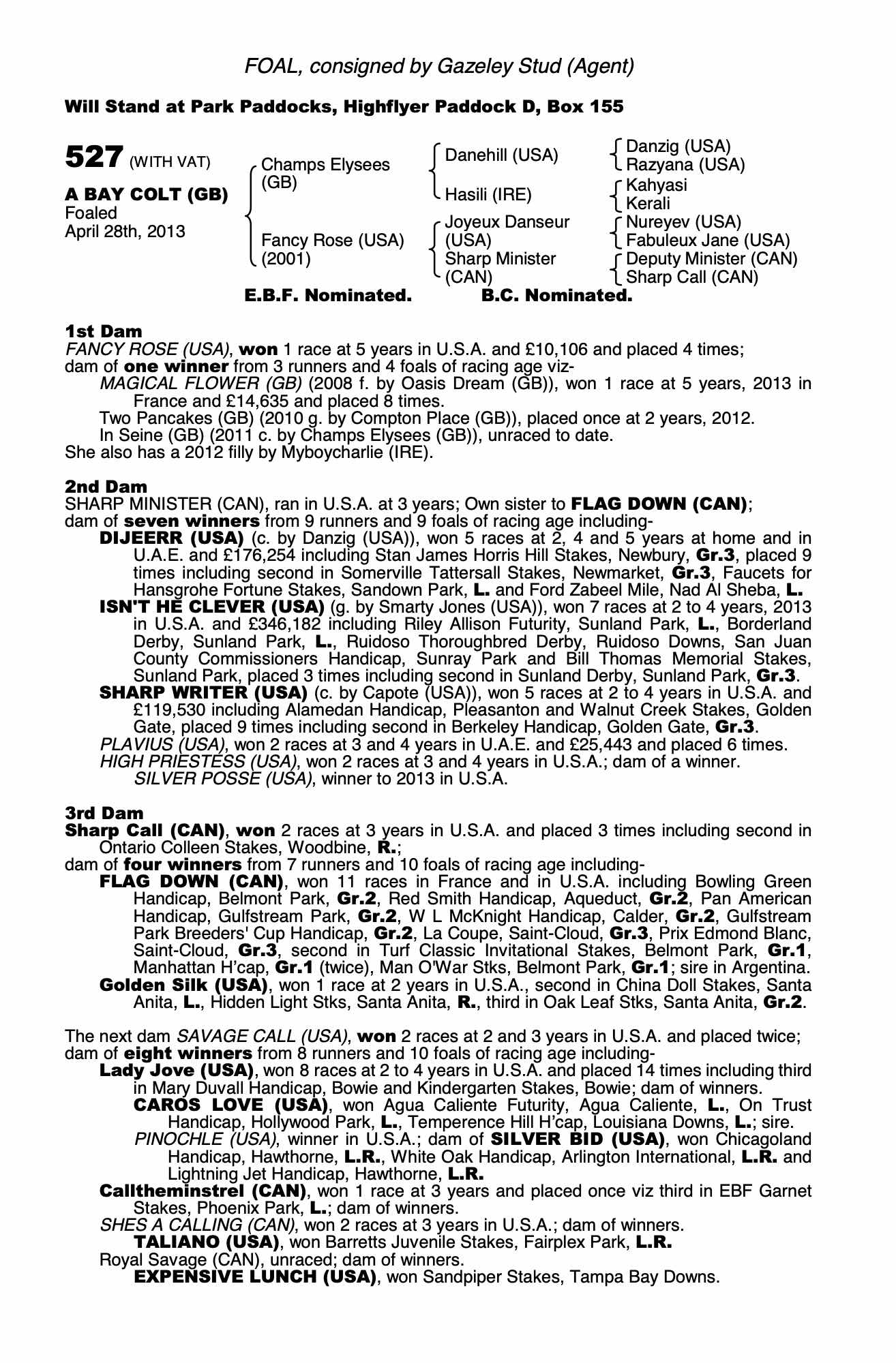 December Foal Sale 2014 lot 305 F. by Mount Nelson (GB) 2014, Gazeley Stud (Agent)=>Vendor 2,000 gns