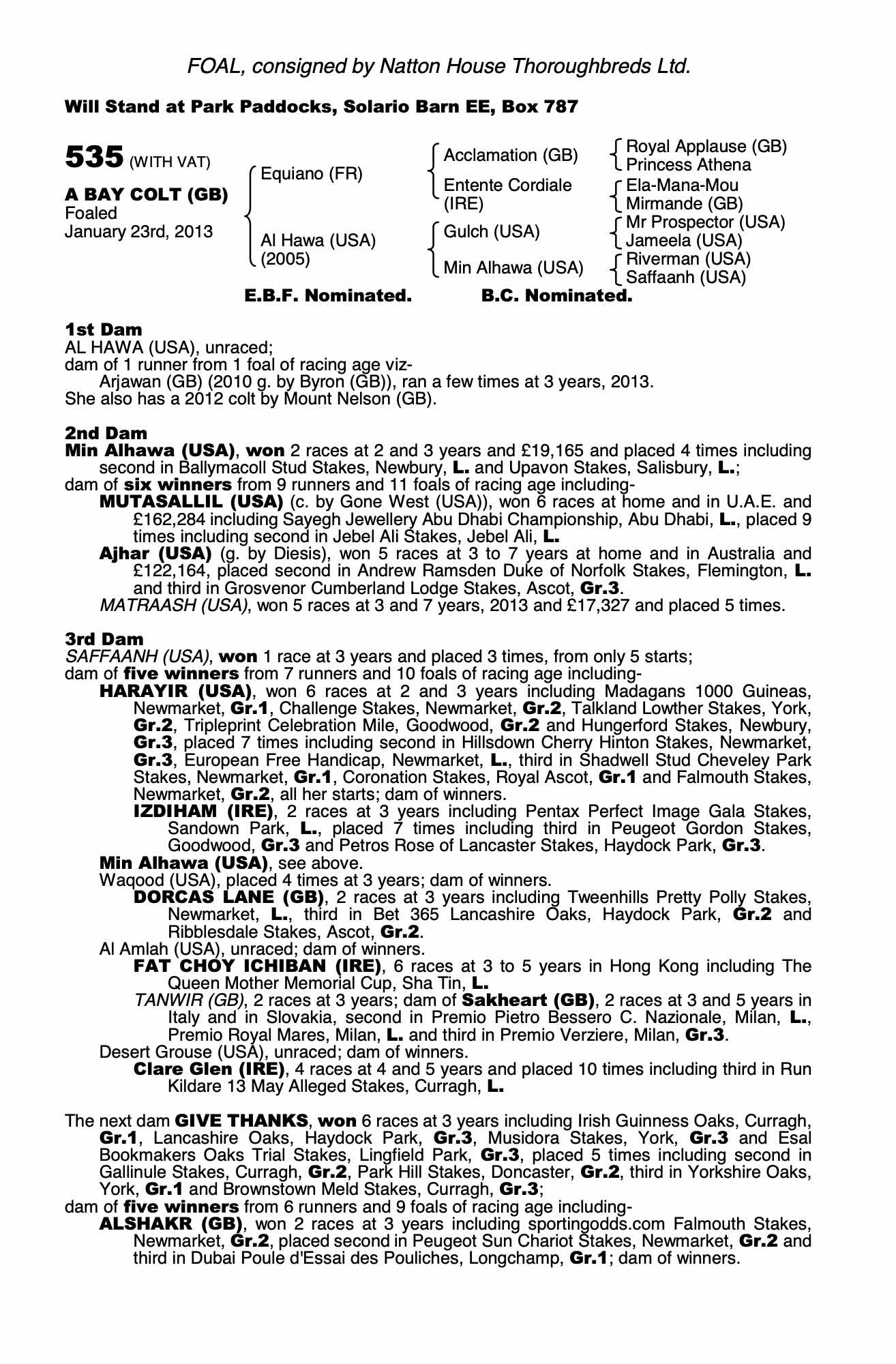 October Yearling Sale, Book 2 2013 lot 1019 C. by Mount Nelson (GB) 2012, Natton House Thoroughbreds Ltd.=>Rabbit Trhovy Stepanov AS 13,000 gns