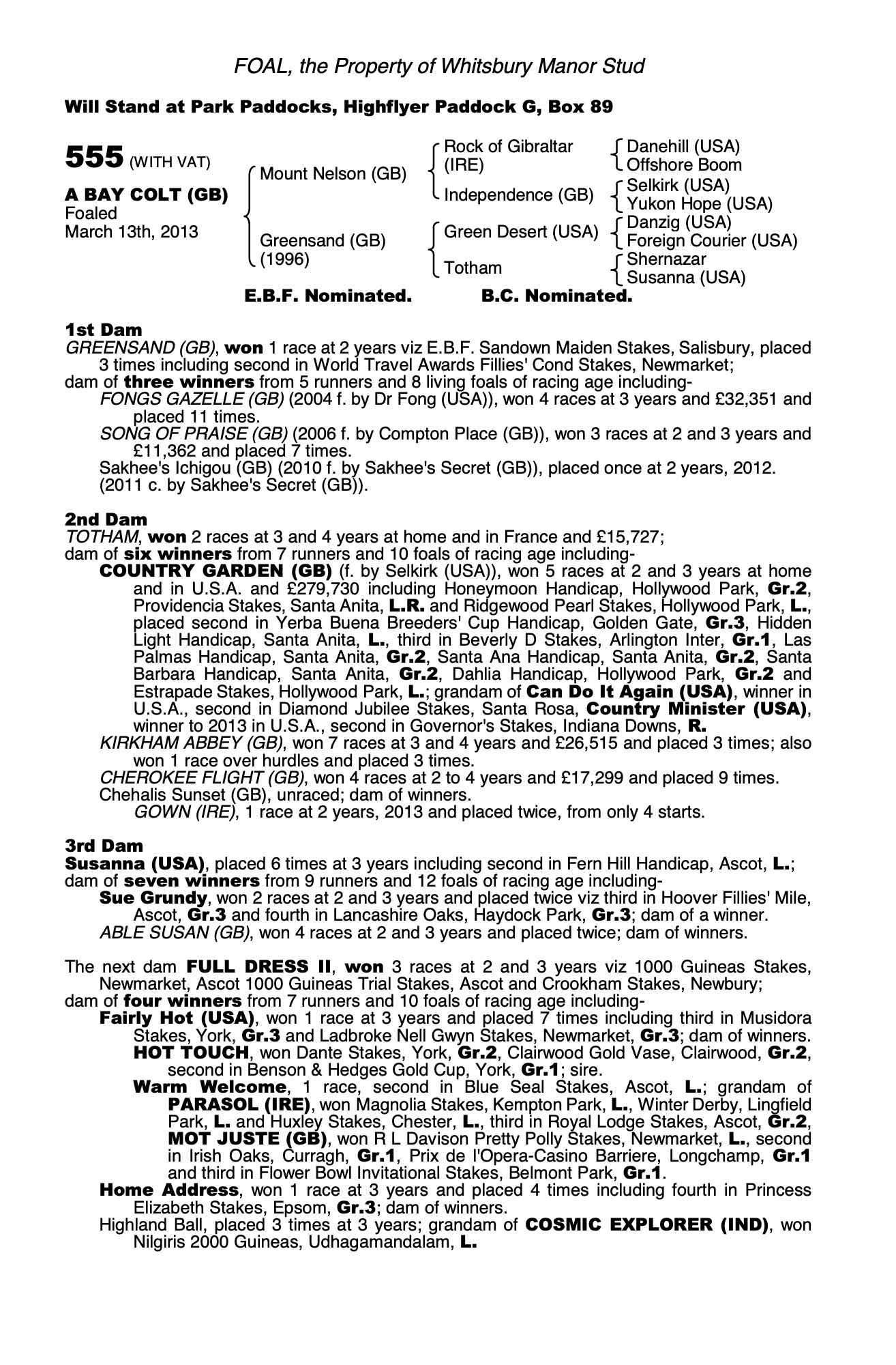 October Yearling Sale 2002 lot 288 C. by Dr Fong (USA) 2001, Highclere Stud=>Conti Bloodstock Services 58,000 gns