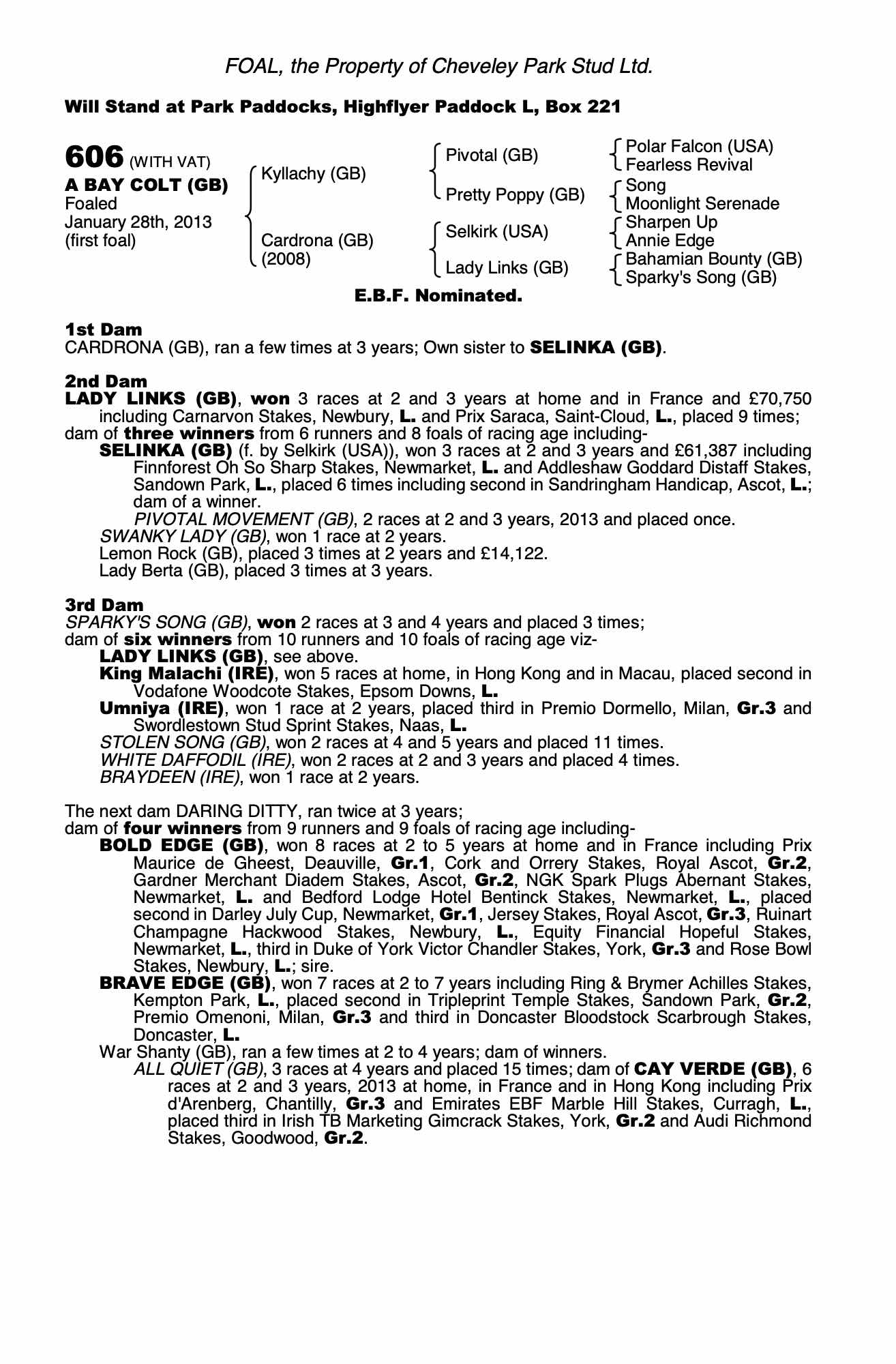 Stabling: Highflyer Paddock L, Box 221