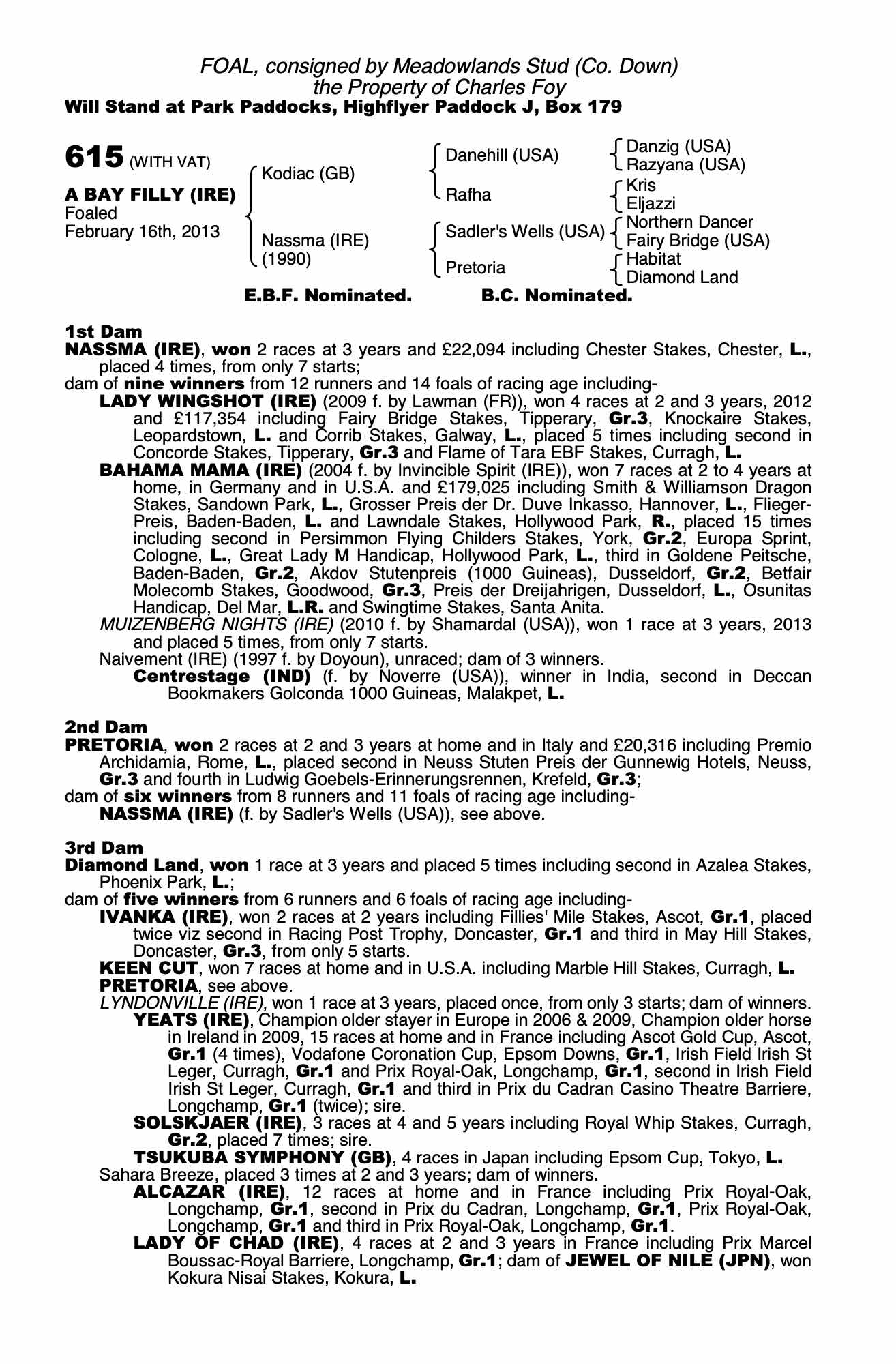 December Foal Sale 2010 lot 730 F. by Shamardal (USA) 2010, Meadowlands Stud, Co. Down=>JC Bloodstock 24,000 gns