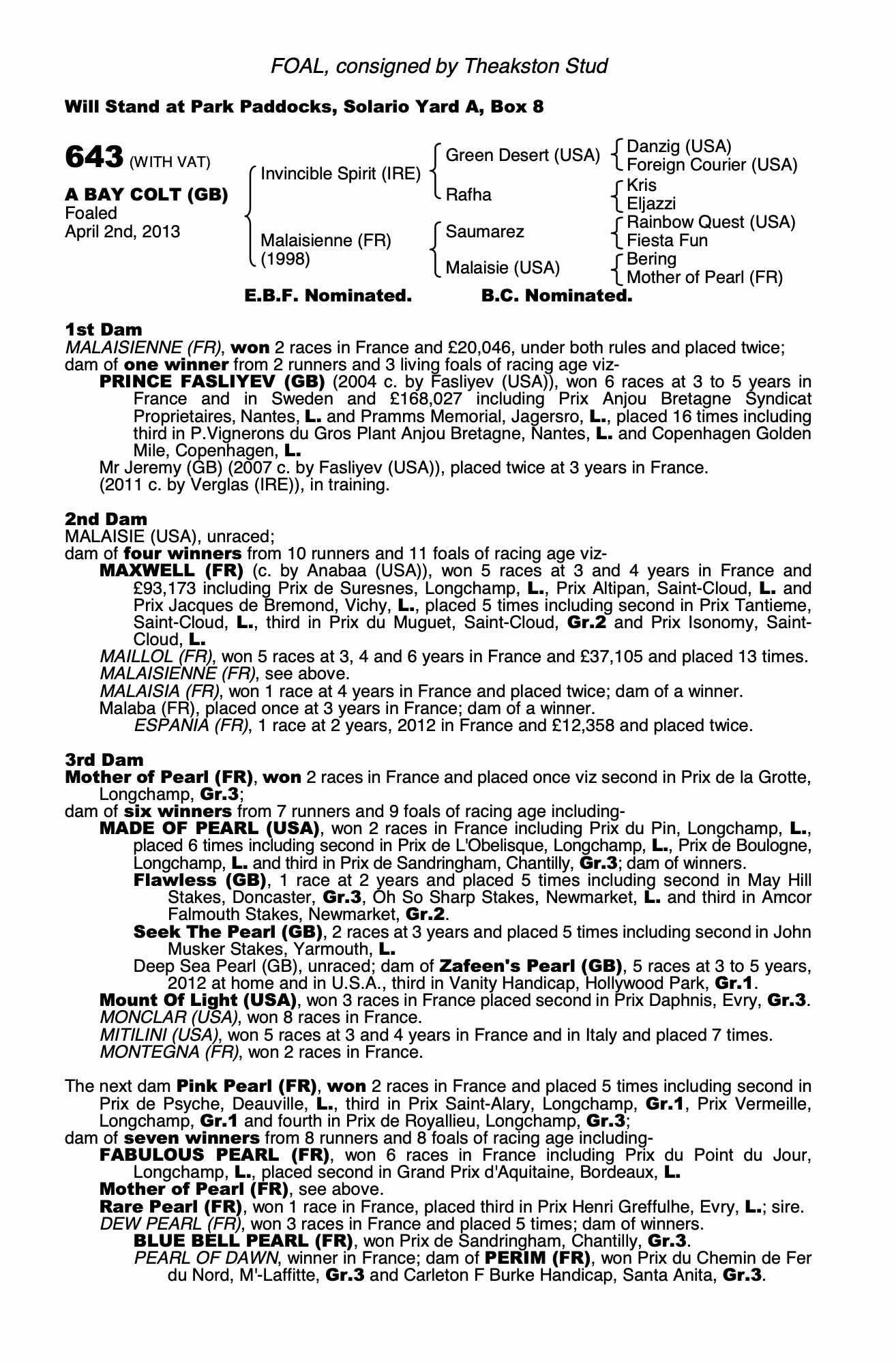 December Foal Sale 2004 lot 1094 C. by Fasliyev (USA) 2004, Theakston Stud=>Emerald Bloodstock 19,000 gns