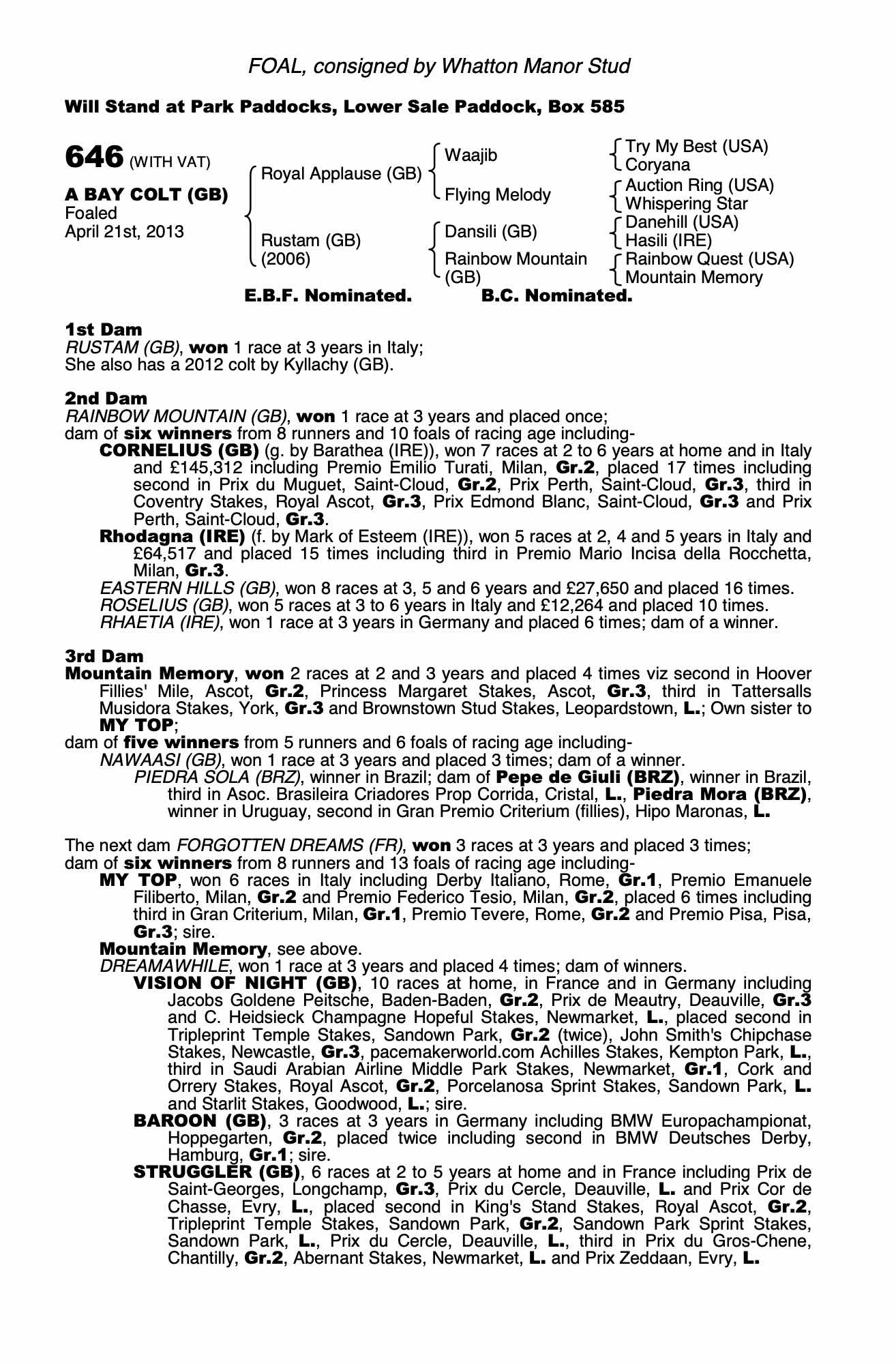October Yearling Sale, Book 3 2014 lot 1654, Whatton Manor Stud=>J Berry 21,000 gns